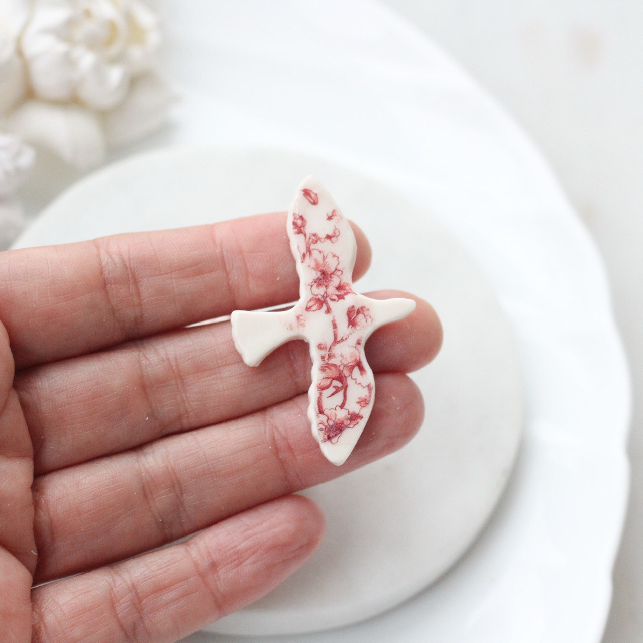 Минималистичная подвеска в форме птицы-голубя — символ мира, свободы и лёгкости. Изделие выполнено из полимерной глины вручную. Одна сторона с аккуратно проработанным рельефом крыльев, вторая гладкая с росписью и мягкими, плавными линиями силуэта.