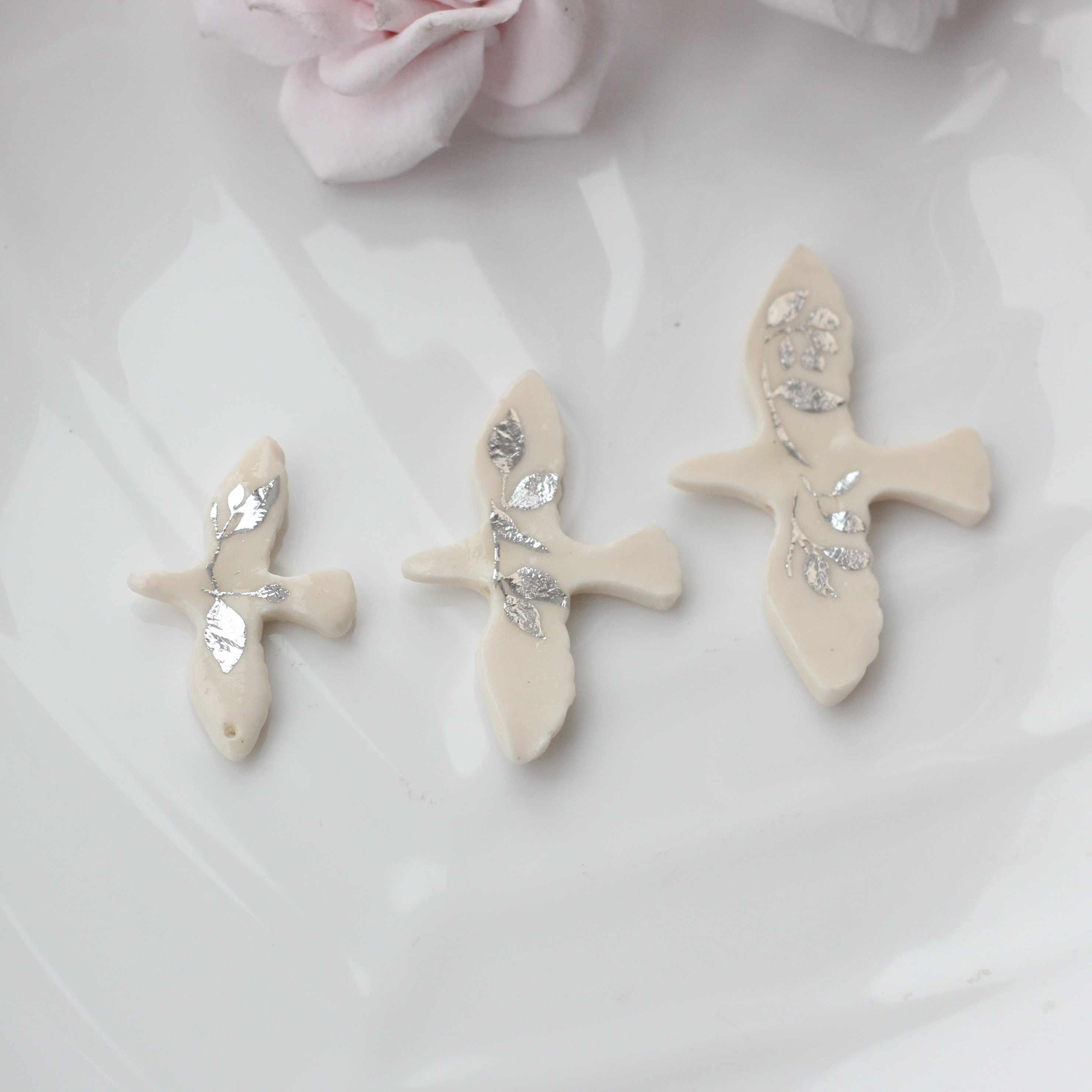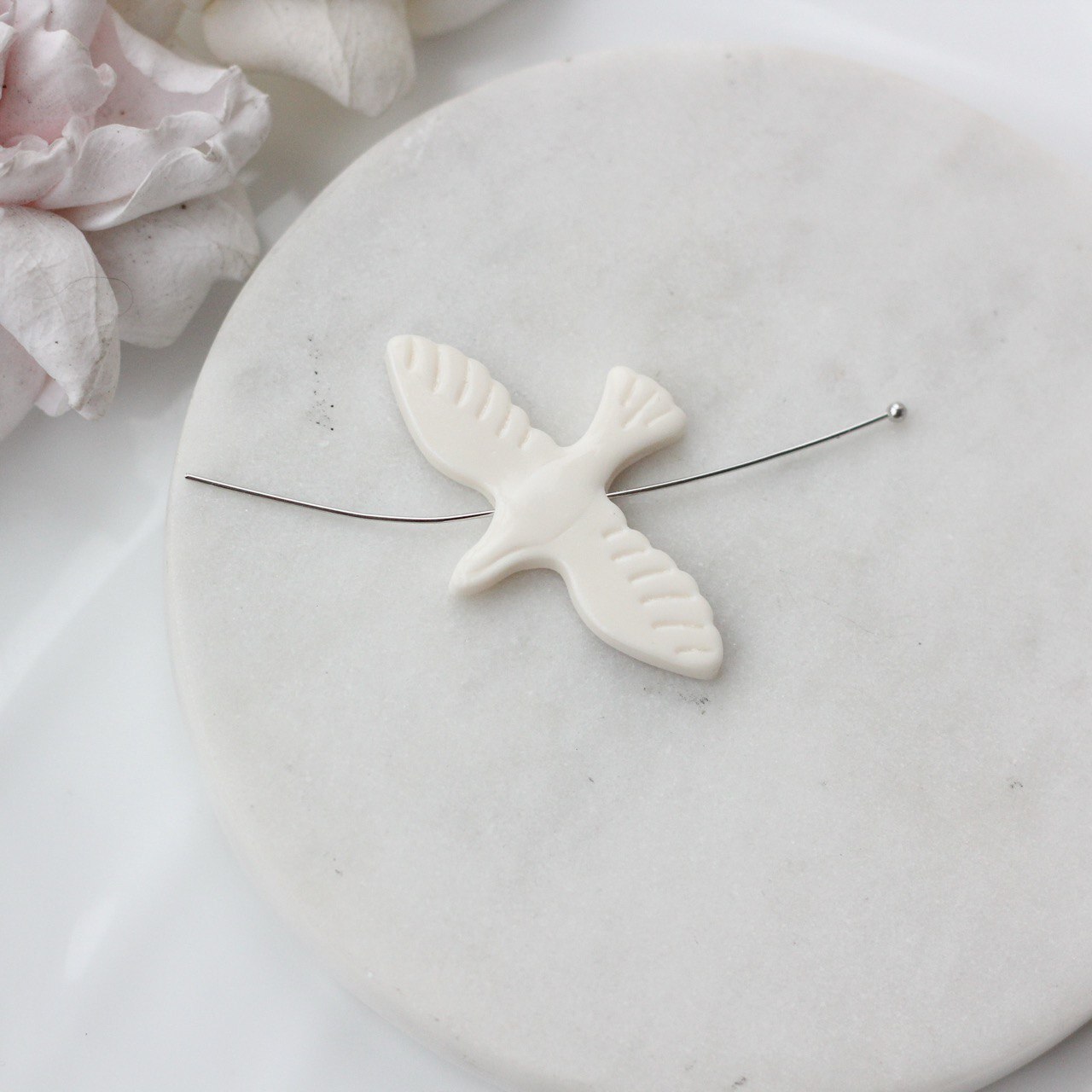 Минималистичная подвеска в форме птицы-голубя — символ мира, свободы и лёгкости. Изделие выполнено из полимерной глины вручную. Одна сторона с аккуратно проработанным рельефом крыльев, вторая гладкая с росписью и мягкими, плавными линиями силуэта.