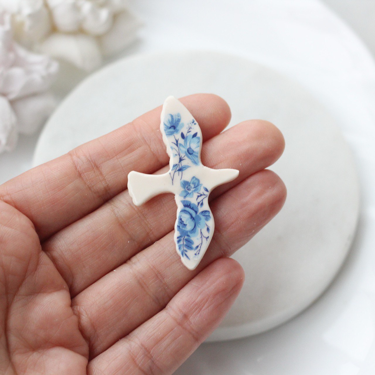 Минималистичная подвеска в форме птицы-голубя — символ мира, свободы и лёгкости. Изделие выполнено из полимерной глины вручную. Одна сторона с аккуратно проработанным рельефом крыльев, вторая гладкая с росписью и мягкими, плавными линиями силуэта.