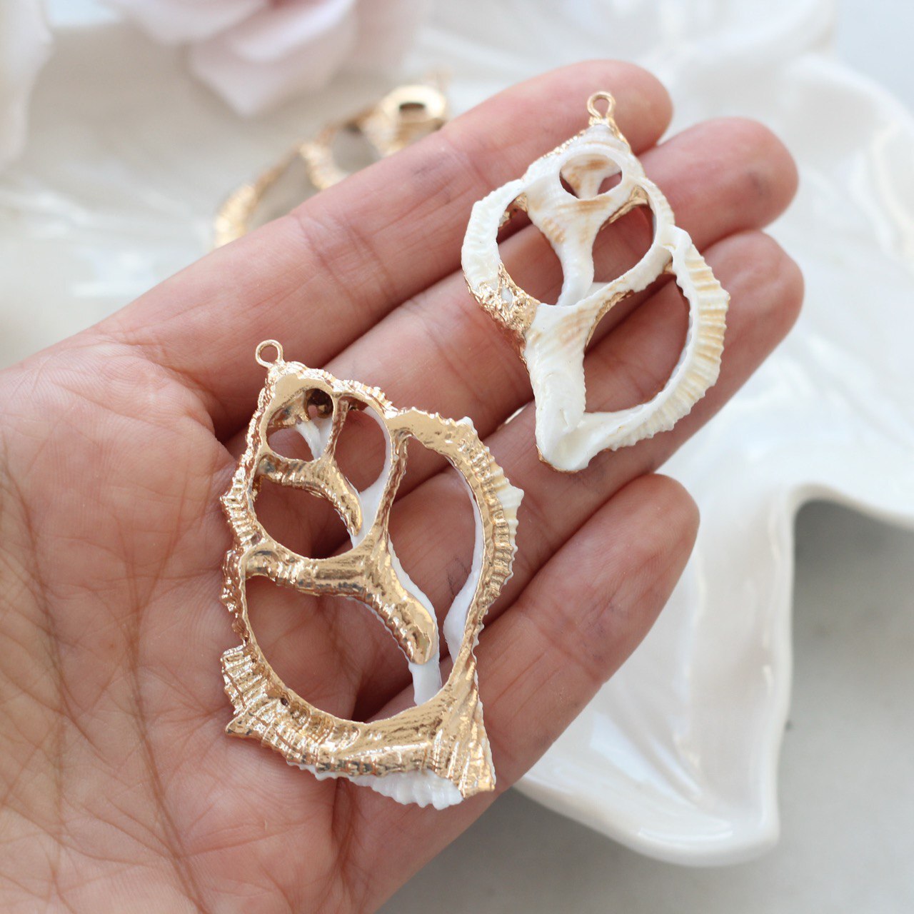 Эти натуральные ракушки с резным ажурным рисунком и золотым напылением выглядят как маленькие произведения искусства. Лёгкие, воздушные и в то же время выразительные, они станут центром любого украшения. Идеально подойдут для создания летних серёг, кулонов, браслетов или декора в морском стиле.