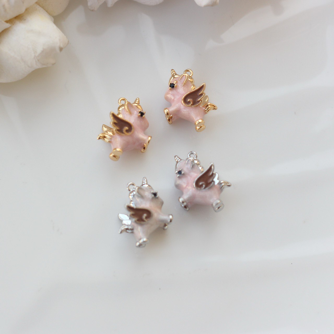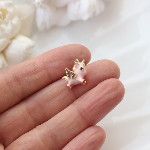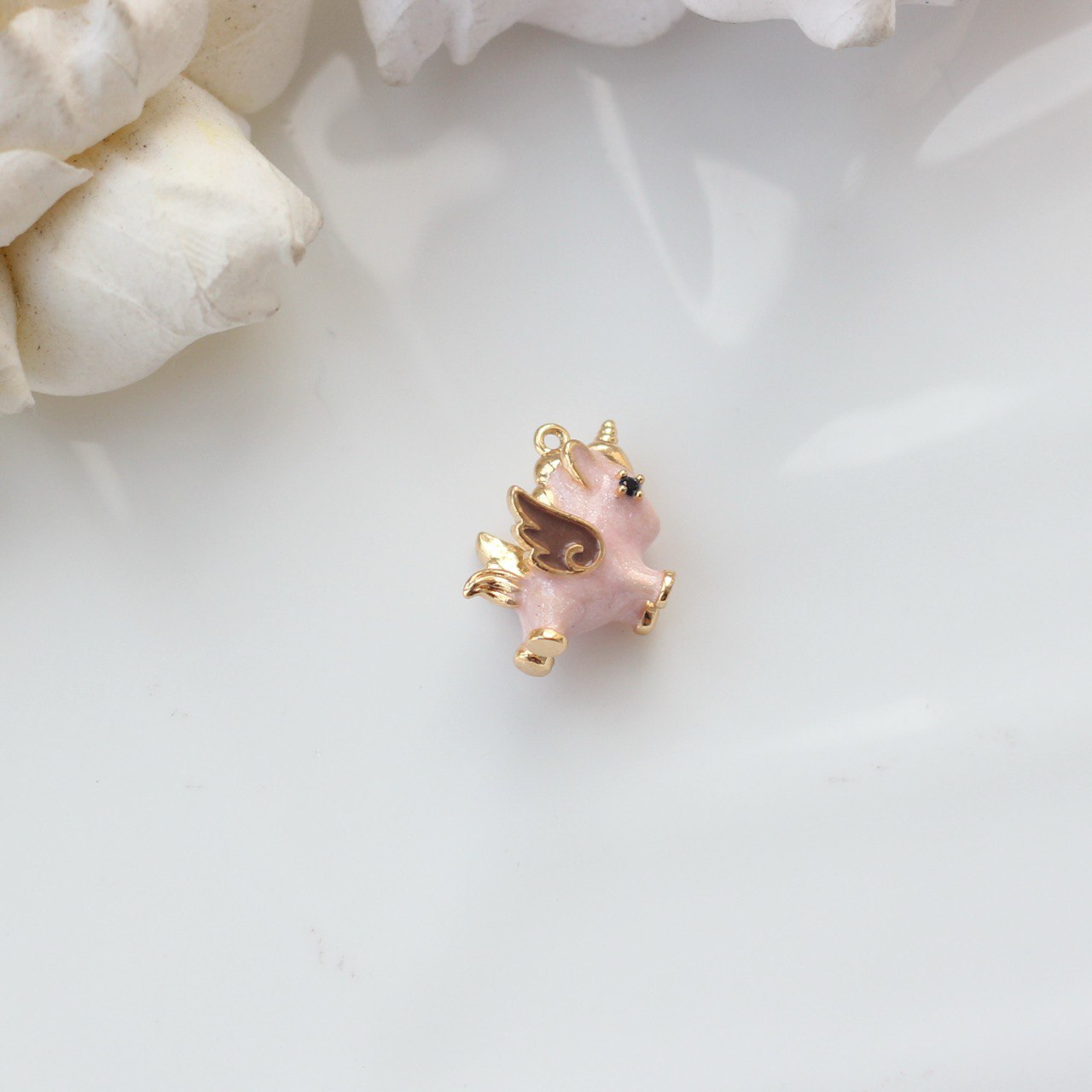 Миниатюрная подвеска в форме пегаса — нежный акцент для украшений с настроением сказки и лёгкости. Глянцевая эмаль создаёт мягкий, фарфоровый эффект, а позолоченные детали подчёркивают форму и добавляют тёплое сияние.