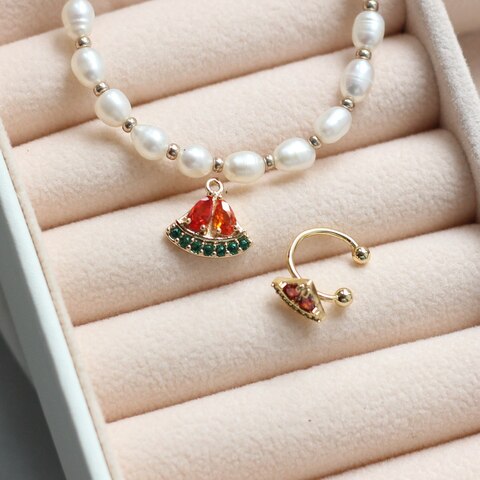 Подвеска с фианитами в виде арбуза. Микроподвеска.