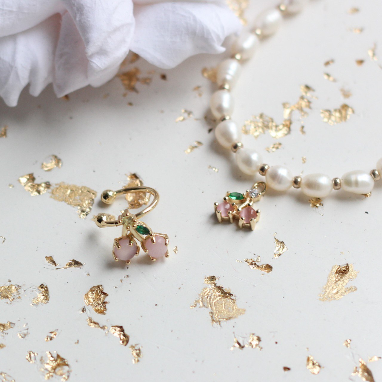 Подвеска с фианитами в виде вишен. Микроподвеска.
