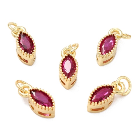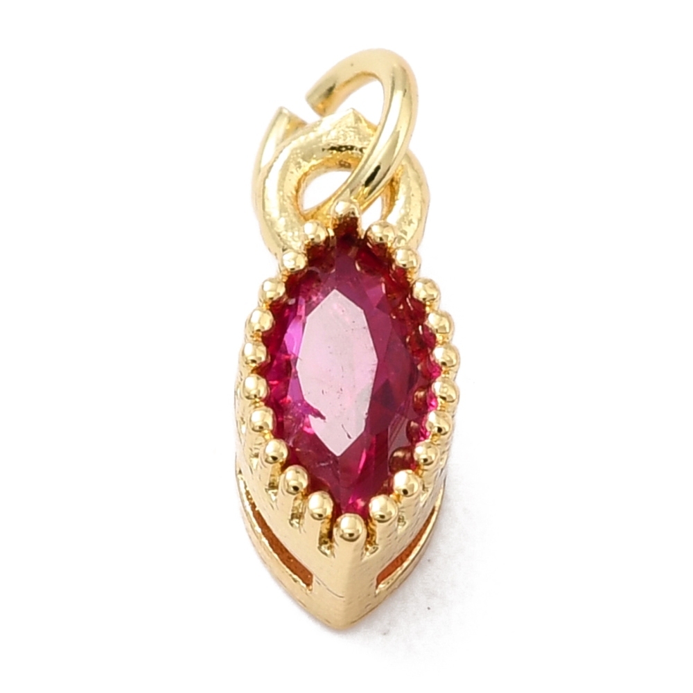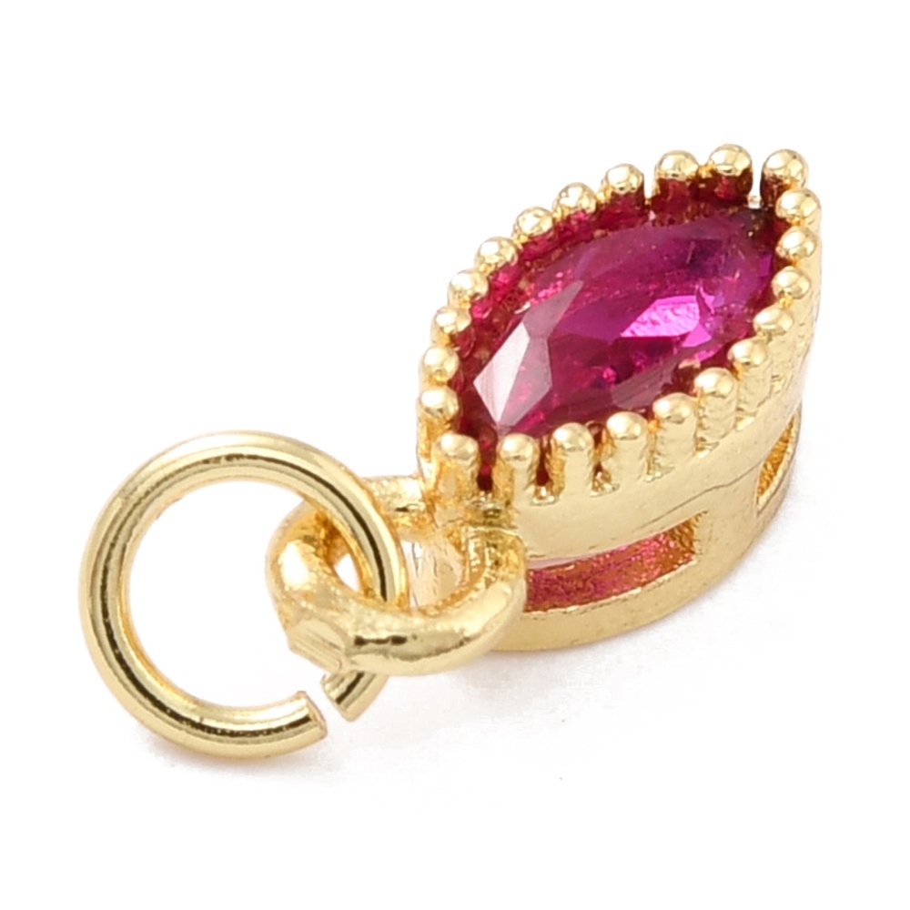 Подвеска с фианитом, форма лодочки, ярко-розовый, 9x4 мм, позолота, П437