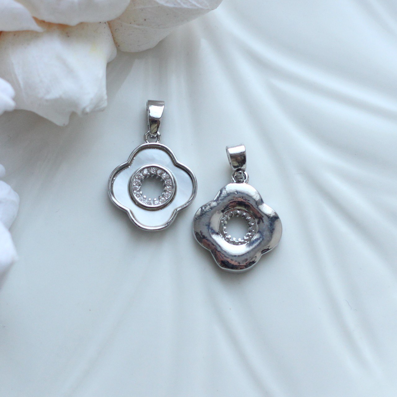 Подвеска с перламутром и фианитами, Клевер, 15*13 мм, родий, П188