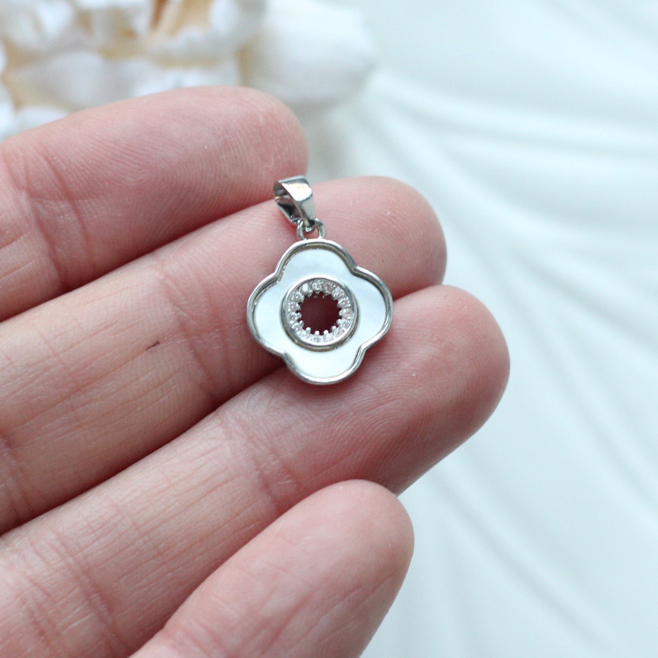 Подвеска с молочным перламутром и фианитами в виде клевера