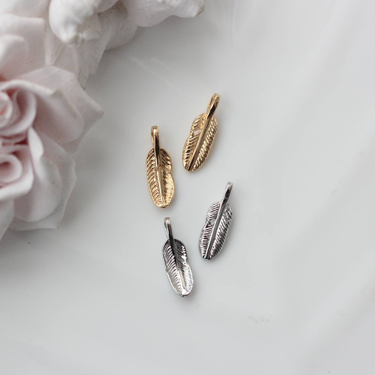 Эти перья идеально подходят для серёг, браслетов, тонких колье и многослойных украшений. Благодаря лаконичной форме они легко вписываются как в минималистичные дизайны, так и в более сложные композиции с бусинами и цепочками.