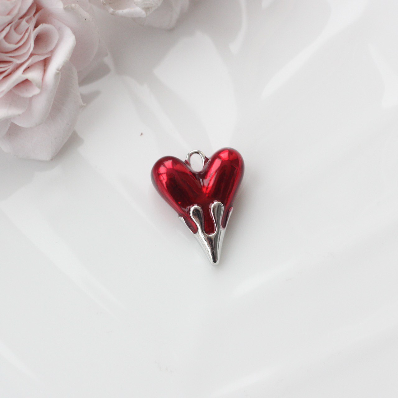 Выразительная подвеска в форме сердца с глянцевым эмалевым покрытием — эффектный акцент для современных и характерных украшений. Глубокий цвет эмали красиво сочетается с серебристыми элементами, создавая яркий, запоминающийся образ.