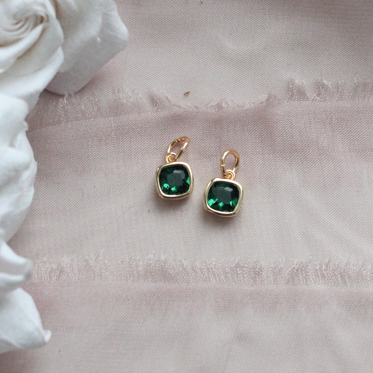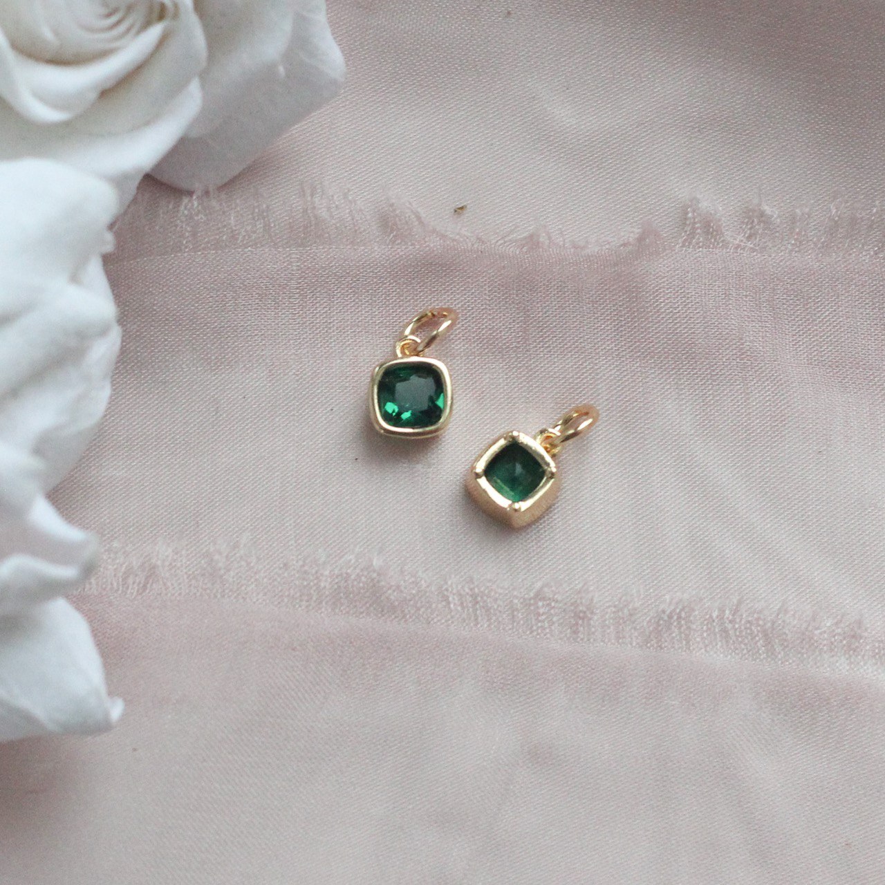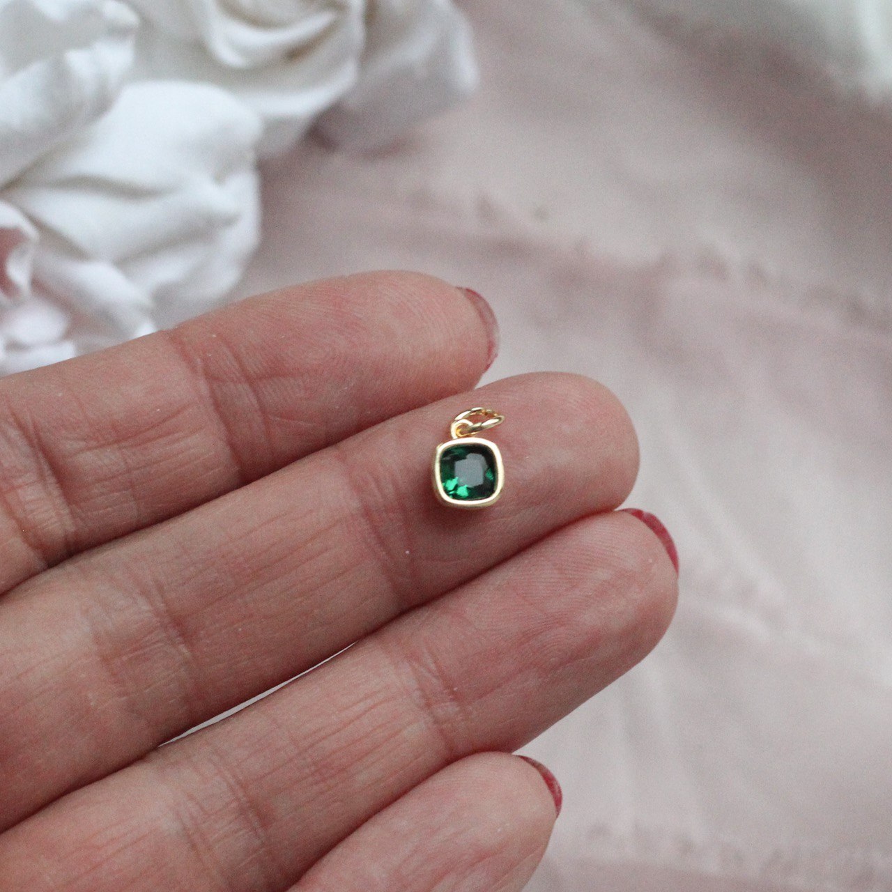 Подвеска с зелёным фианитом, квадратная, 6 мм, позолота П364