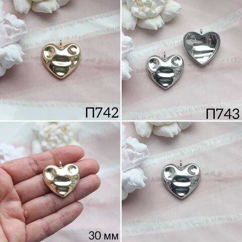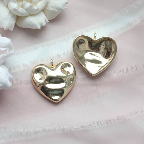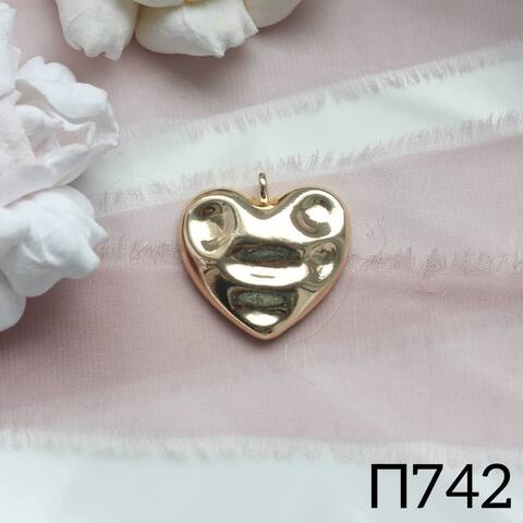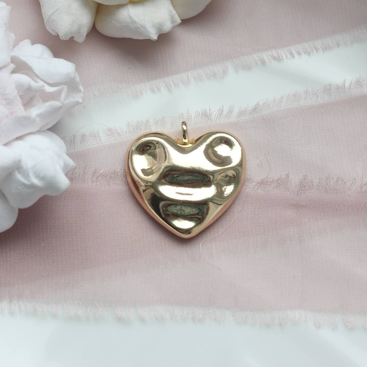 УЦЕНКА!!! Подвеска Сердце, мятый металл, 30 мм, позолота, У150