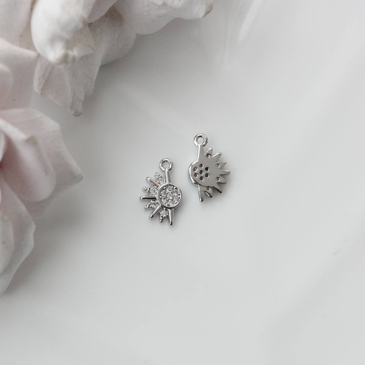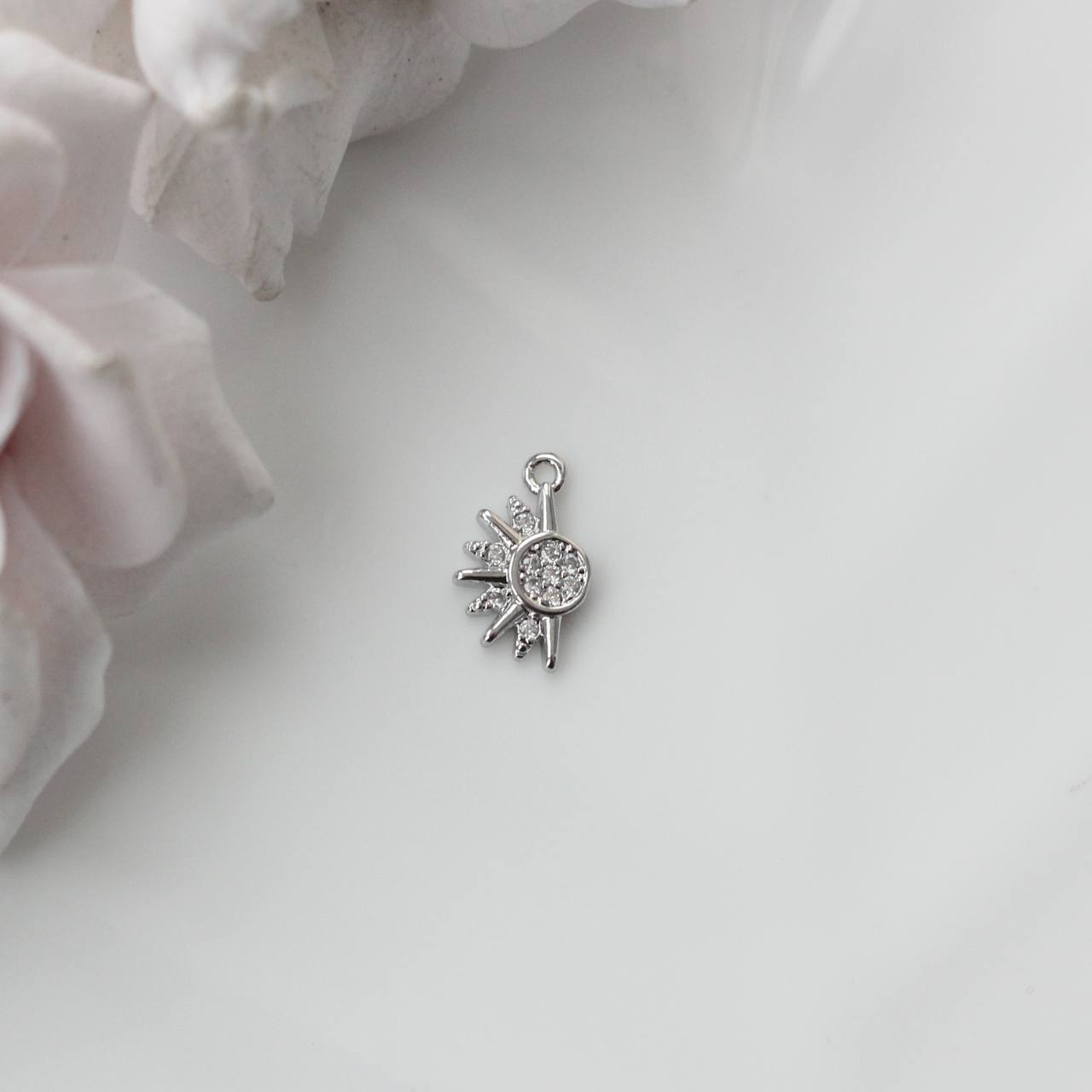 Изящная подвеска в форме солнца — символ тепла, энергии и внутреннего света. Центральная часть украшена мерцающими фианитами, которые красиво отражают свет, создавая эффект сияния и объёма.