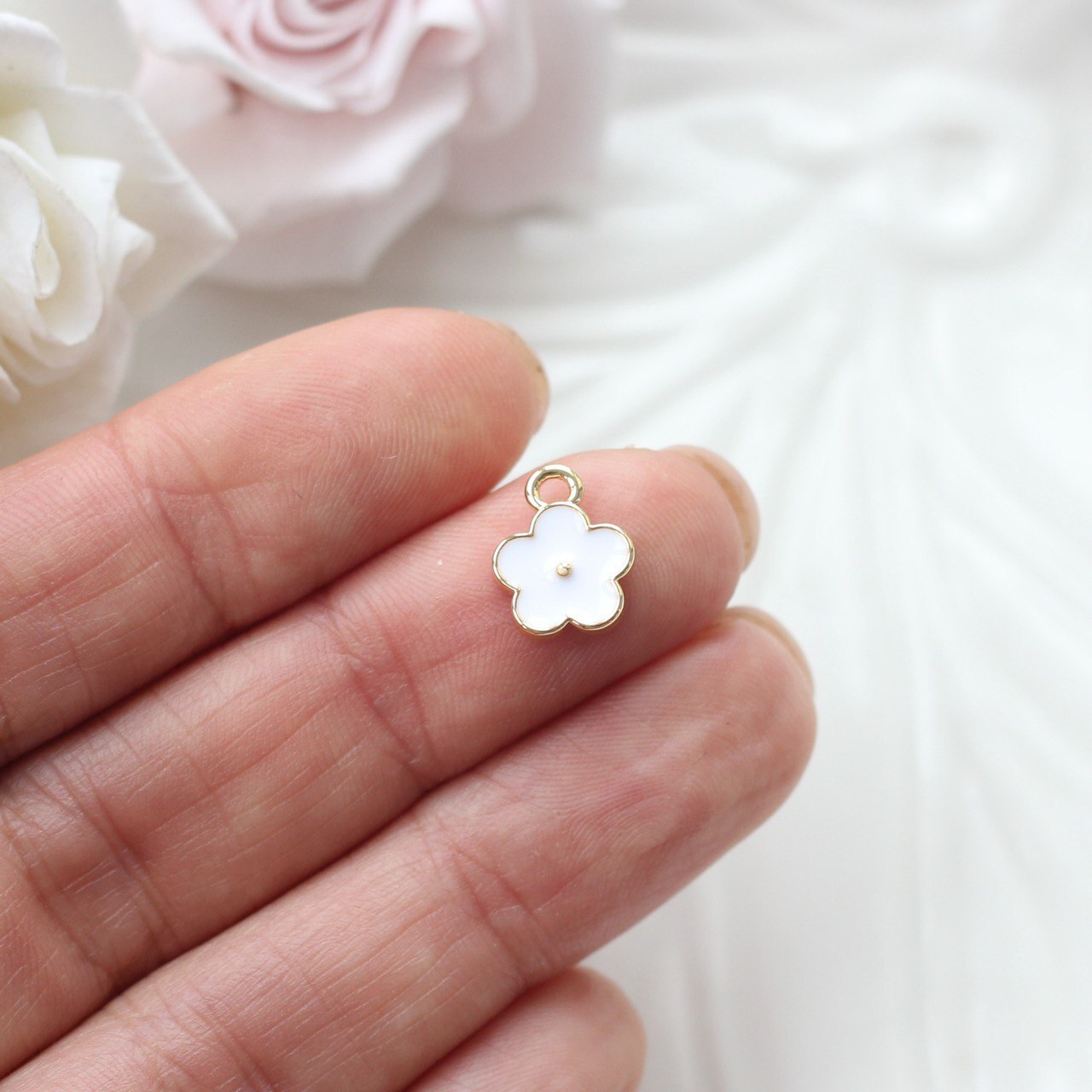 Милый и универсальный элемент в форме цветка станет нежным акцентом в ваших украшениях ручной работы. Лаконичный силуэт, покрытый эмалью насыщенного цвета, создаёт аккуратный и стильный образ, а металлическая окантовка добавляет изящного блеска.