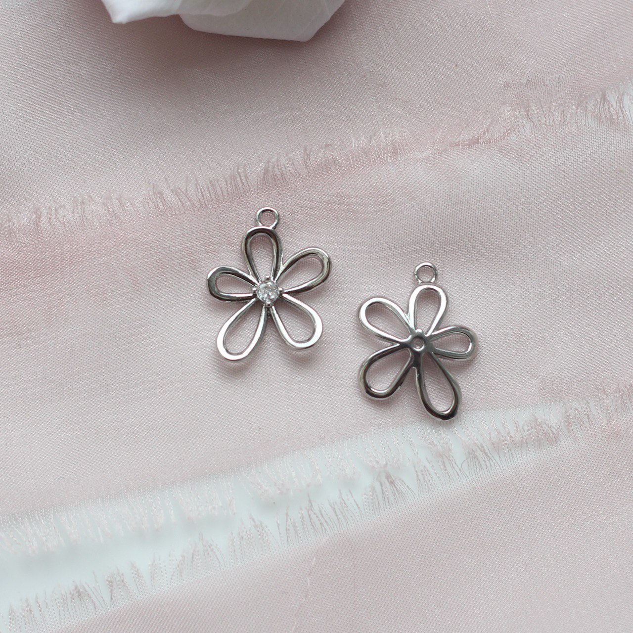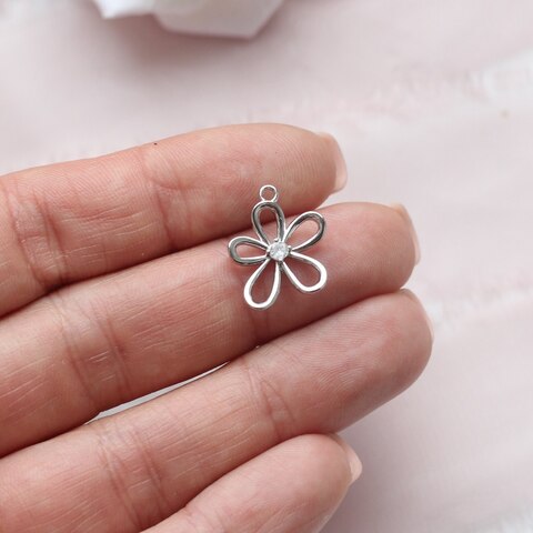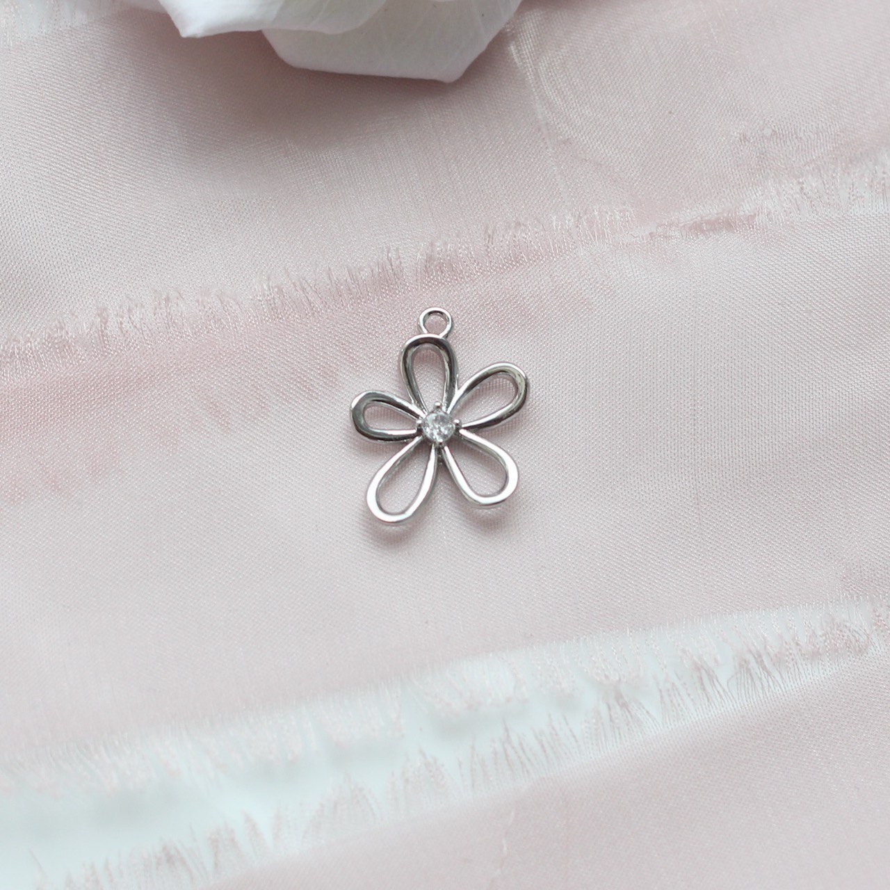 Подвеска Цветок с фианитом 17*14 мм, родий, П248