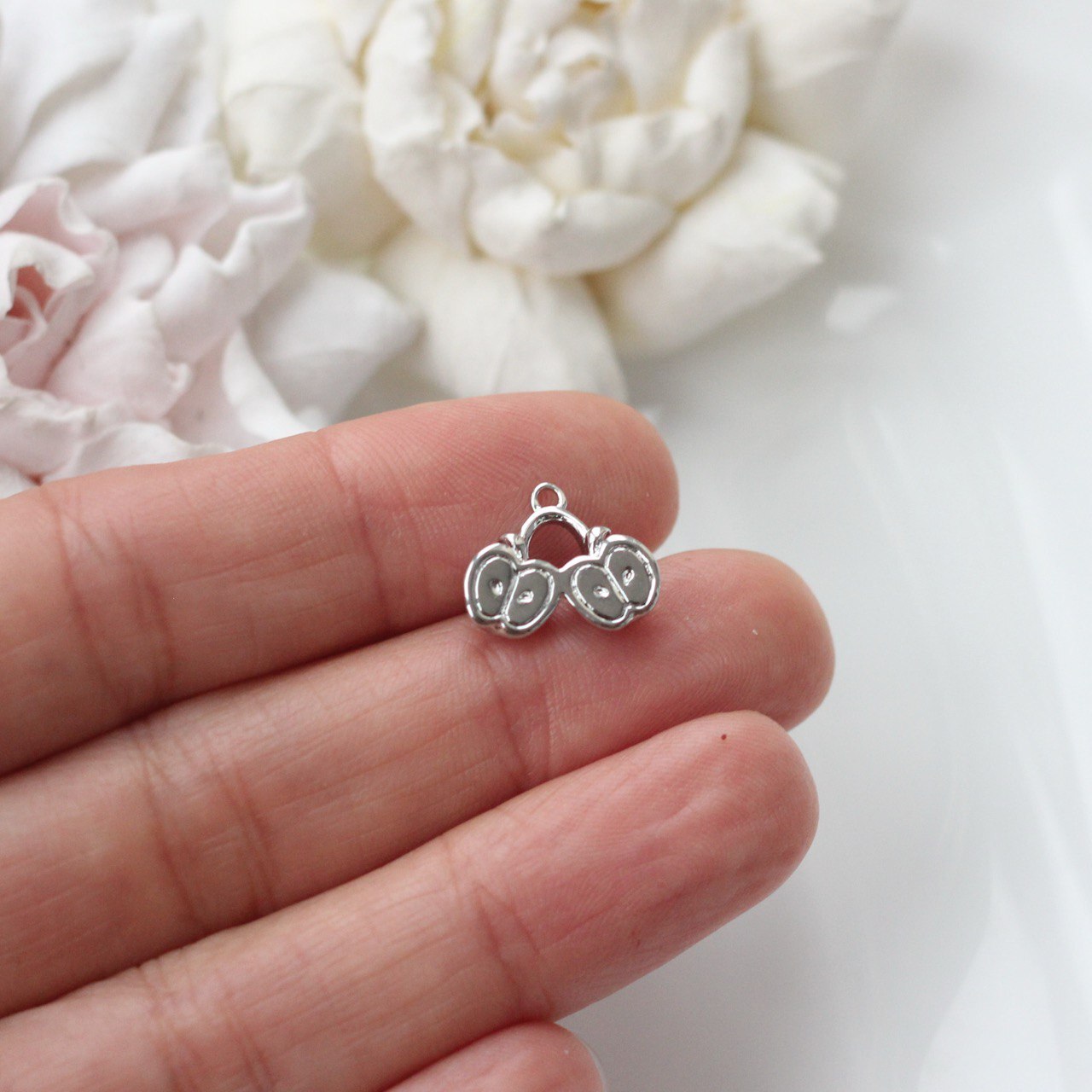 Нежная подвеска в виде двух половинок яблока — объёмная, блестящая, с характерными «семечками» внутри. Миниатюрная и аккуратная, она станет милым акцентом в украшениях и добавит им немного фруктового настроения.