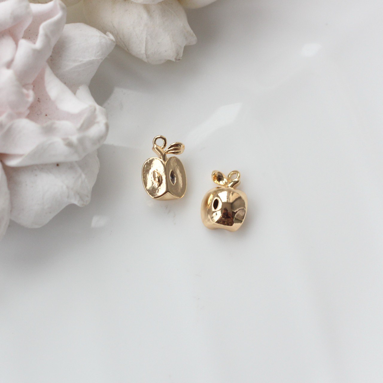 Объёмная подвеска в виде четверти яблока с выразительной сердцевиной, листиком и гладкой глянцевой поверхностью. Миниатюрная, аккуратная, с приятным блеском — станет милым акцентом в украшениях и добавит сочности и свежести композиции.