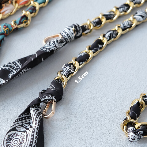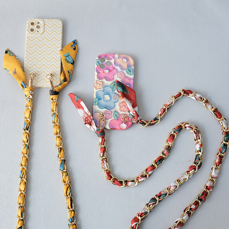 Оригинальная и лёгкая цепочка, декорированная шелковистой лентой с принтом, — универсальный аксессуар, который можно использовать как дополнительную ручку для сумки или как удобный шнур для телефона. Длина 120 см позволяет носить аксессуар кросс-боди или на плече. Золотистая цепь в сочетании с лентой в нежных персиково-белых оттенках придаёт образу яркий и женственный акцент.