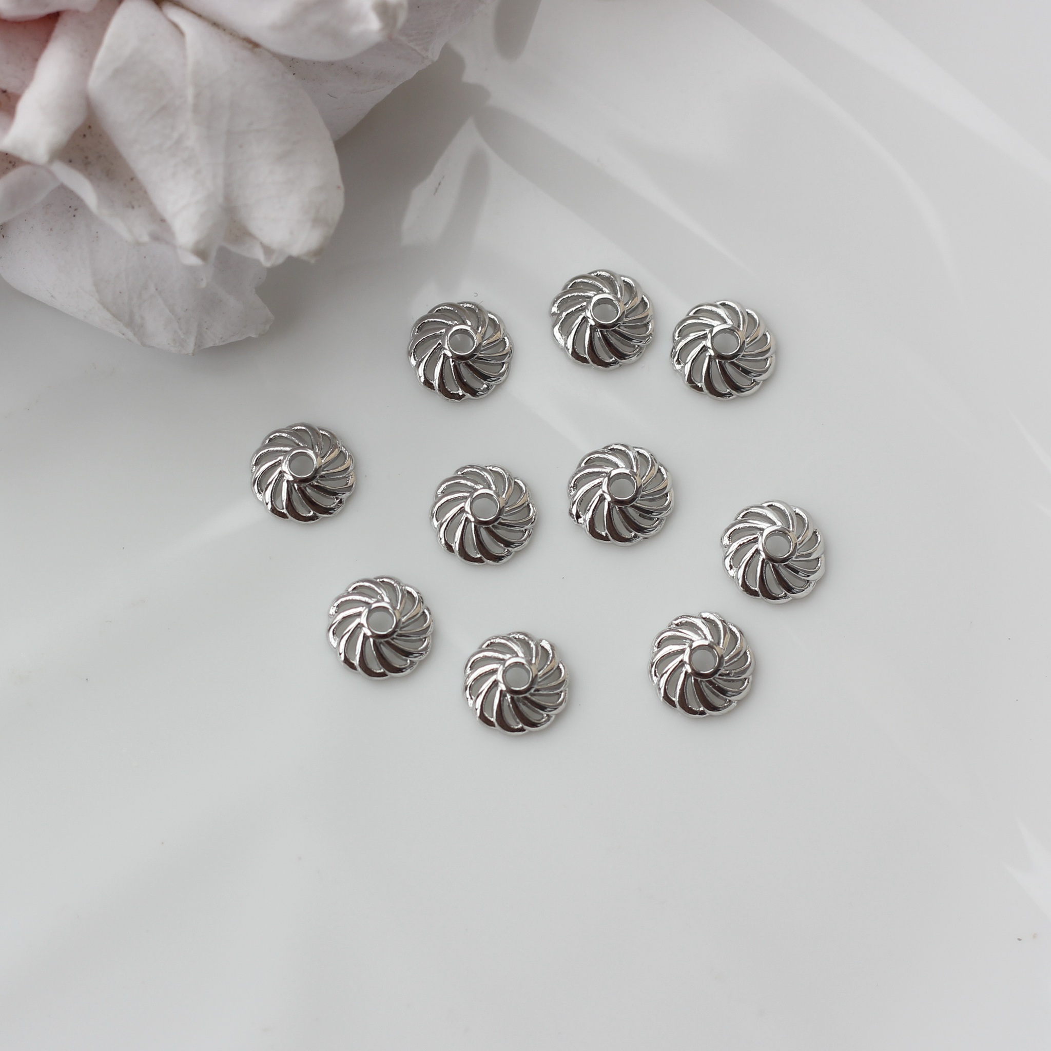 Шапочка для бусин 8 мм, родий, 10 шт, Р111