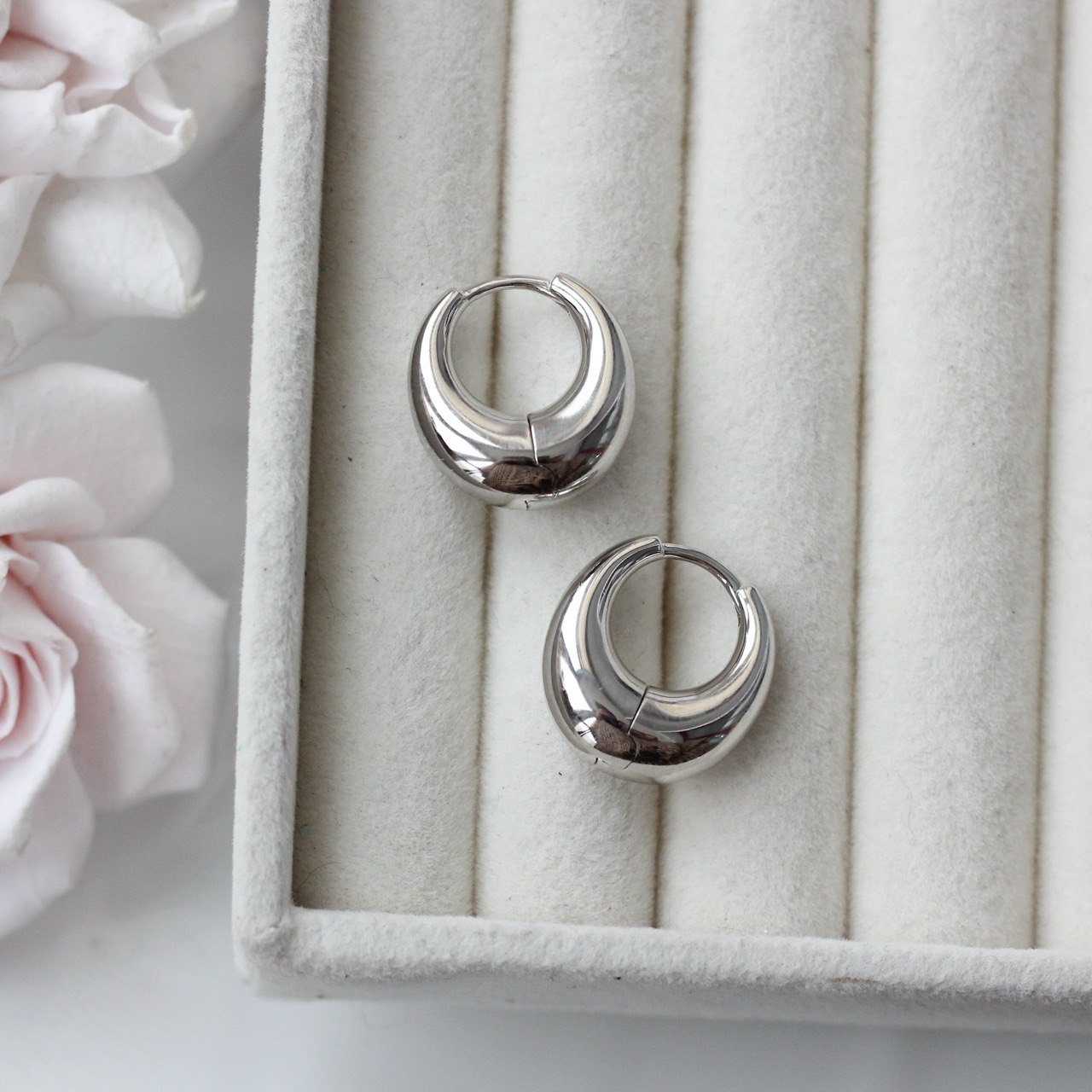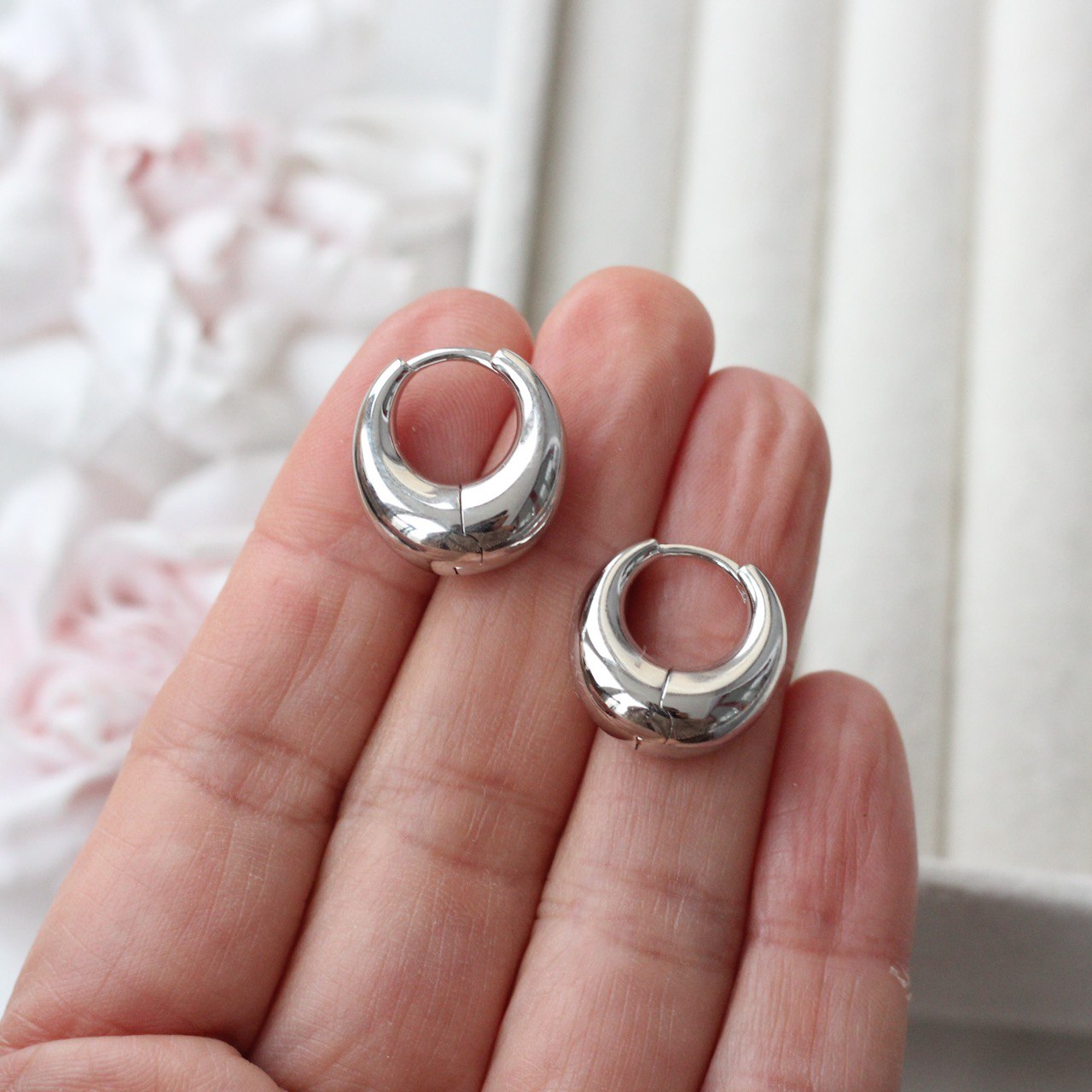 Классические швензы с французским замком и идеально гладкой зеркальной поверхностью. Лаконичная форма и мягкий объём создают эффект «чистого золота» — аккуратный блеск без лишних деталей.