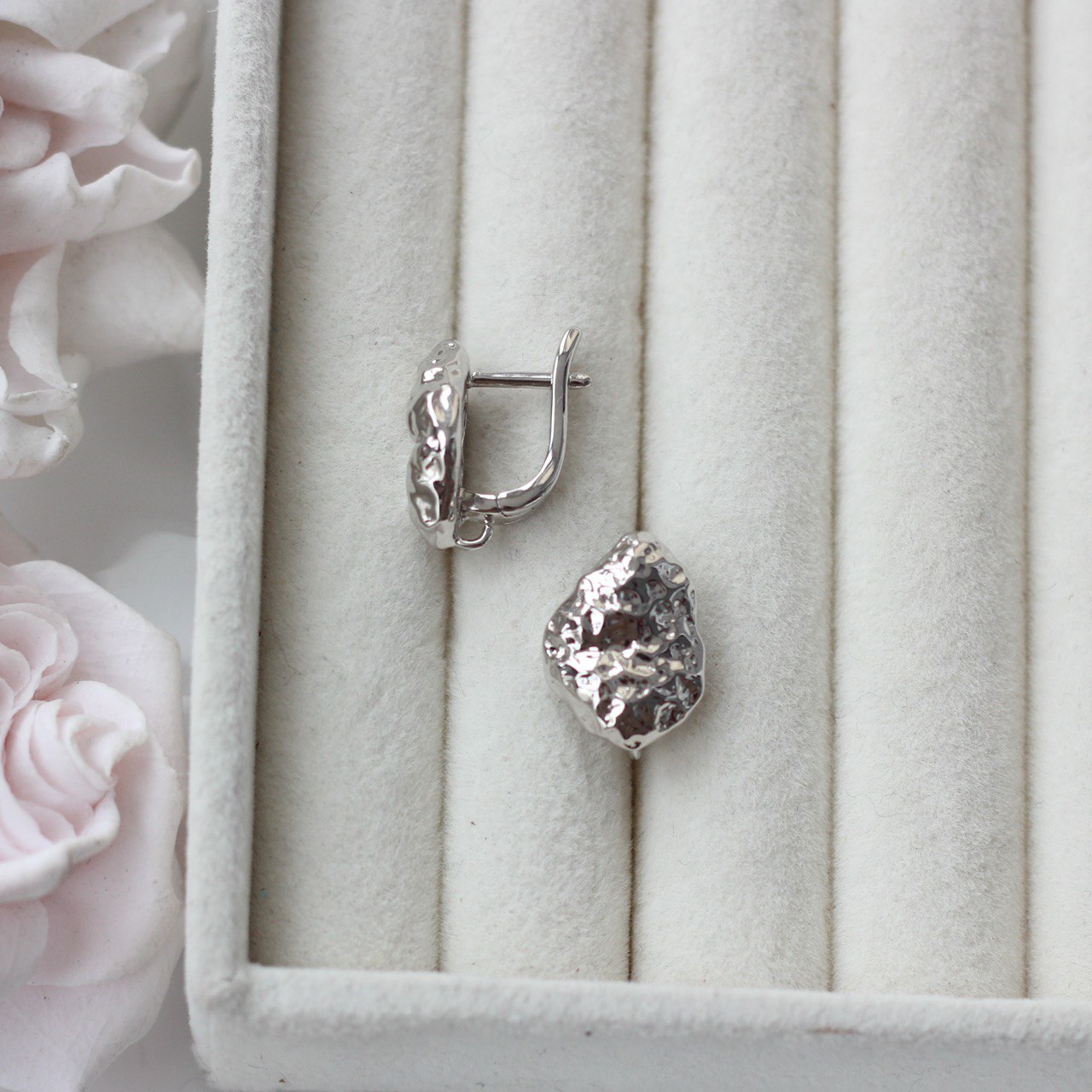 Фактурная поверхность красиво отражает свет и делает серьги визуально более дорогими и дизайнерскими. Эти швензы идеально подойдут для актуальных украшений в стиле minimal chic, modern, арт и скандинавской эстетики.