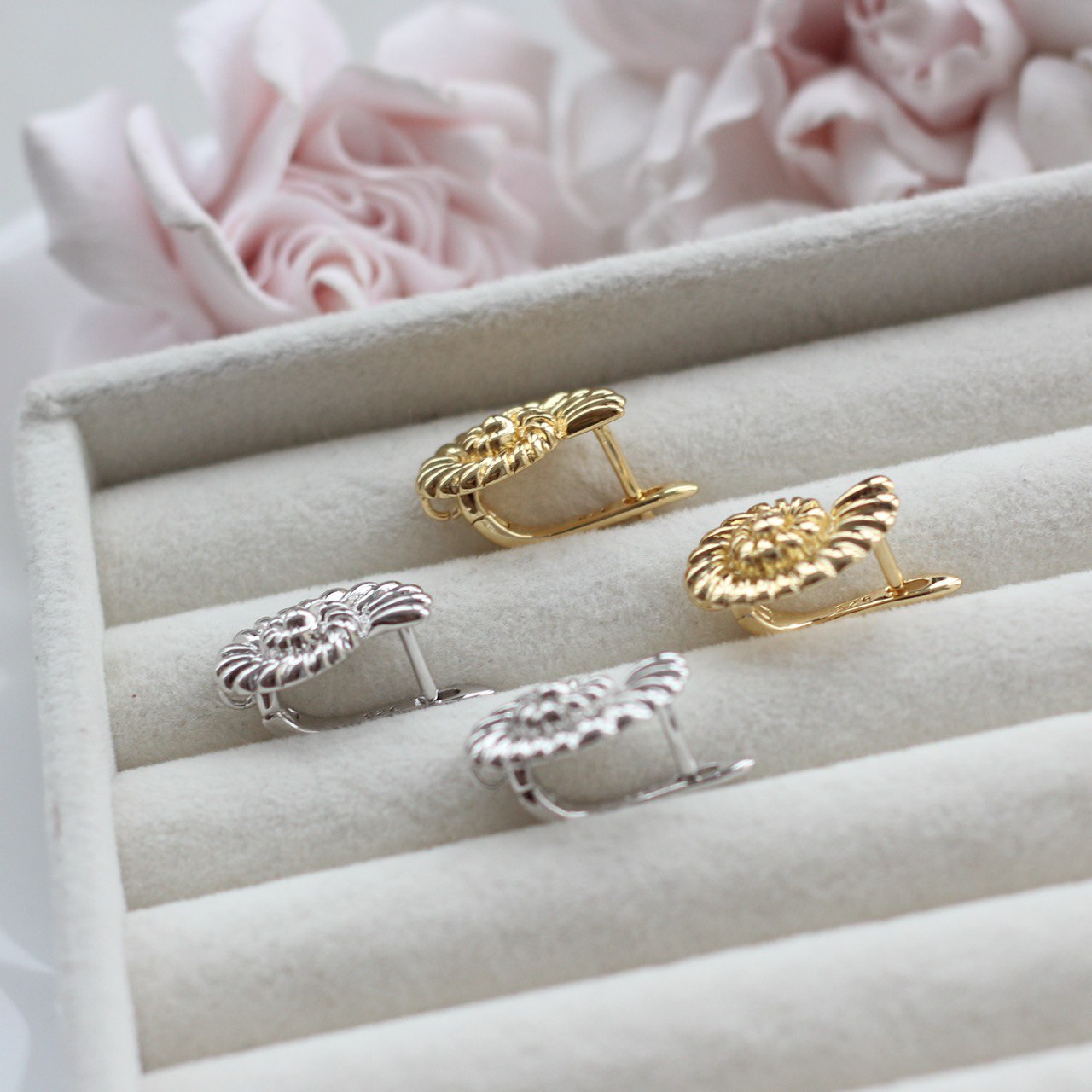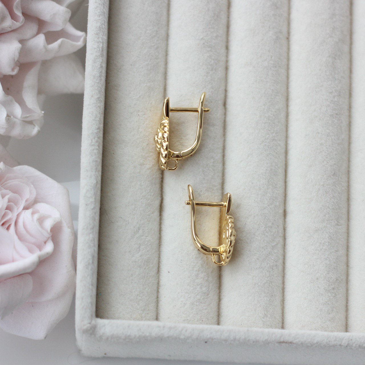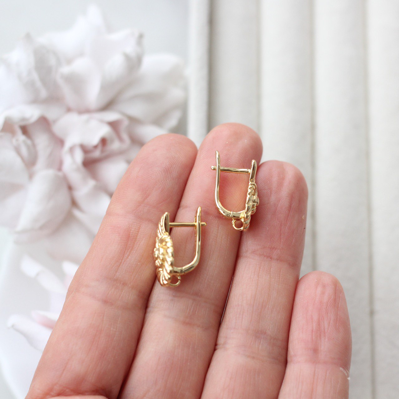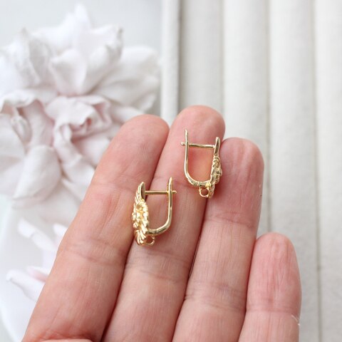 Английский замок обеспечивает надёжную фиксацию и комфорт при носке, а декоративная часть делает эти швензы самостоятельным элементом дизайна — их можно использовать как в минималистичных серьгах, так и в более сложных композициях с подвесками, жемчугом или кристаллами.
