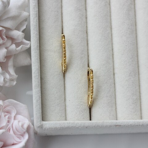 Английский замок обеспечивает надёжную фиксацию и комфорт при носке. Нижнее ушко позволяет при желании дополнить серьги подвесными элементами — жемчугом, каплями, цепочками или камнями.