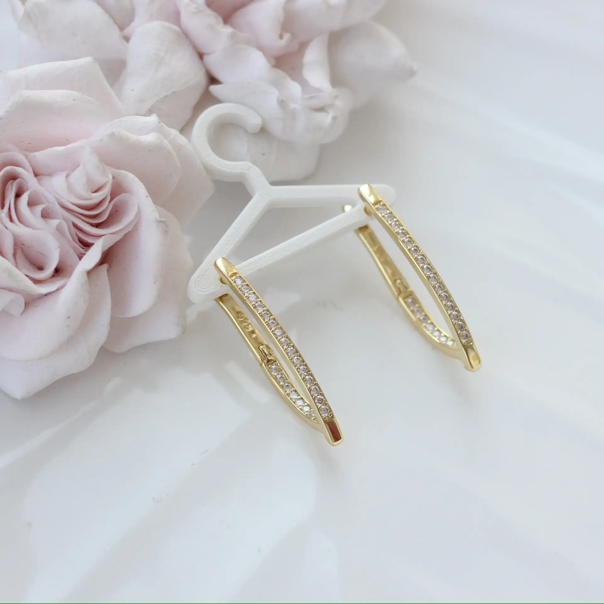 Удлинённая форма визуально вытягивает силуэт серьги и подчёркивает линию шеи. Нижнее ушко позволяет легко дополнять швензы подвесками: каплями, жемчугом, цепочками, кристаллами, натуральными камнями и декоративными элементами.