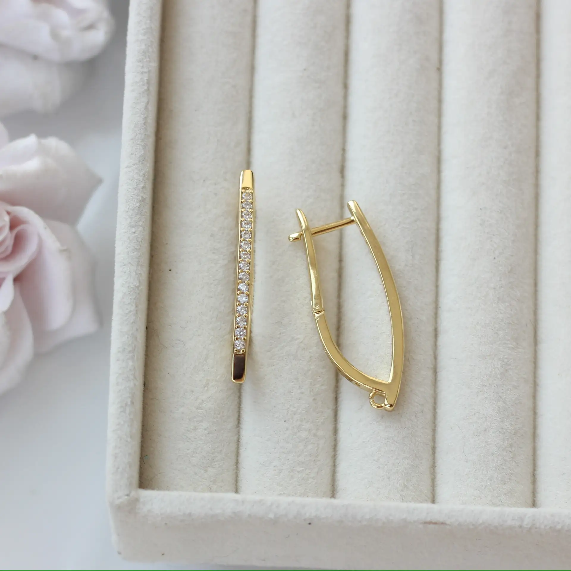 Лаконичные швензы с английским замком в удлинённой форме — идеальная база для элегантных и современных серёг. Чистые линии и минималистичный дизайн делают их универсальными: подходят как для простых повседневных моделей, так и для сложных дизайнерских композиций.