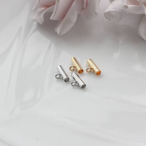 Лаконичный спейсер в форме прямой трубочки с аккуратной боковой петелькой — универсальный элемент для современных украшений. Чистая геометрия трубочки добавляет дизайну структуру и ритм, а петелька позволяет легко закрепить подвеску, каплю, жемчужину или декоративную цепочку.