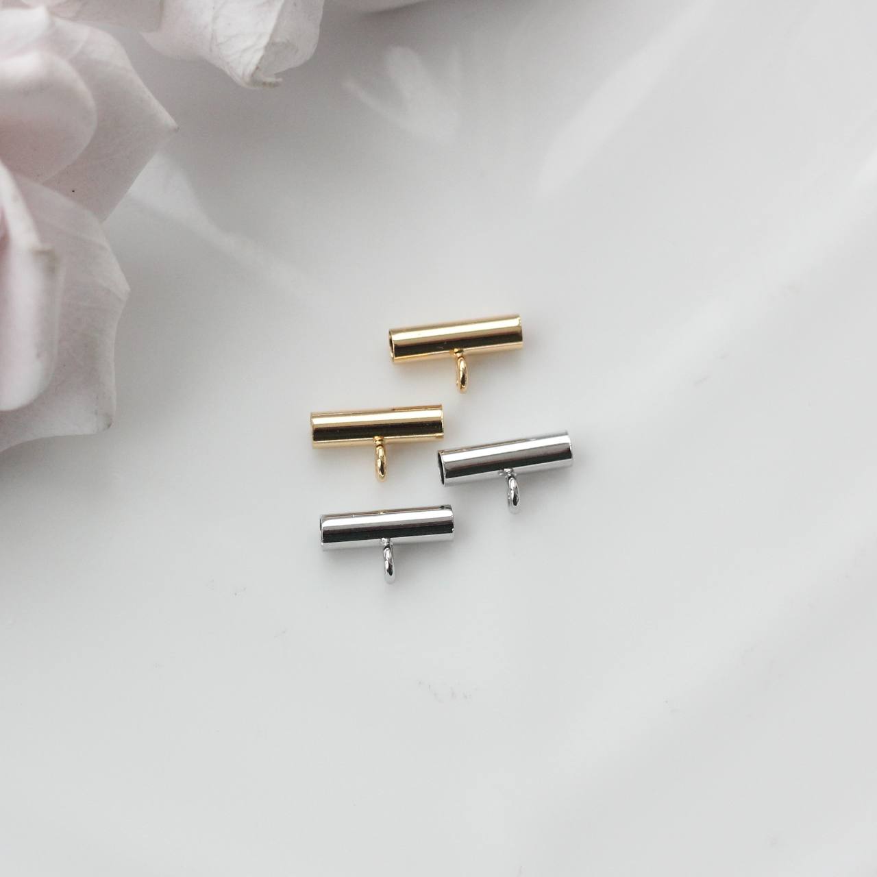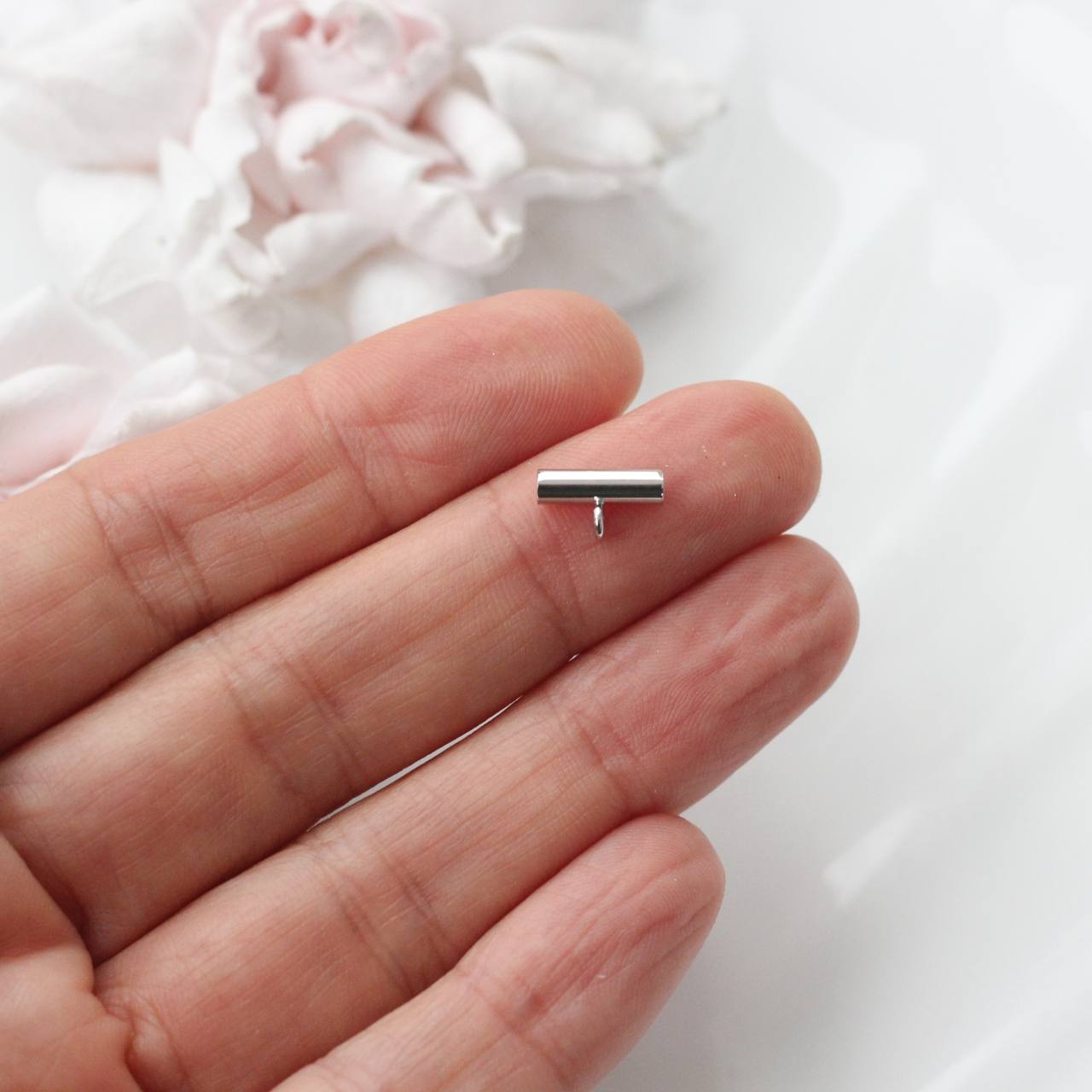 Лаконичный спейсер в форме прямой трубочки с аккуратной боковой петелькой — универсальный элемент для современных украшений. Чистая геометрия трубочки добавляет дизайну структуру и ритм, а петелька позволяет легко закрепить подвеску, каплю, жемчужину или декоративную цепочку.