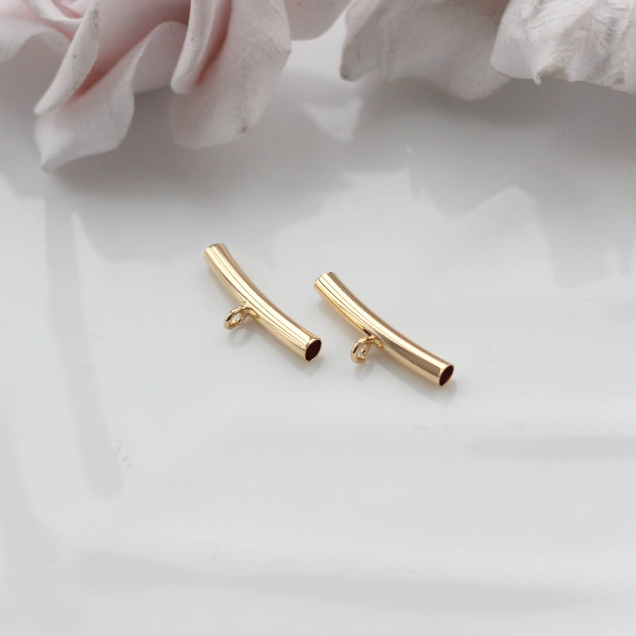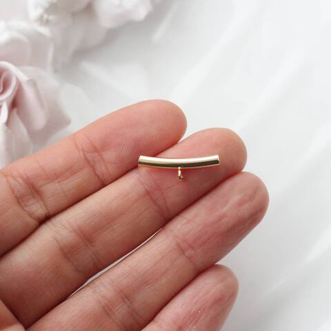 Изящный спейсер в форме слегка изогнутой трубочки с миниатюрной петелькой — функциональный и очень эстетичный элемент для авторских украшений. Лаконичная форма создаёт чистую линию в дизайне, а петелька позволяет добавить подвеску или акцентный элемент, не перегружая композицию.