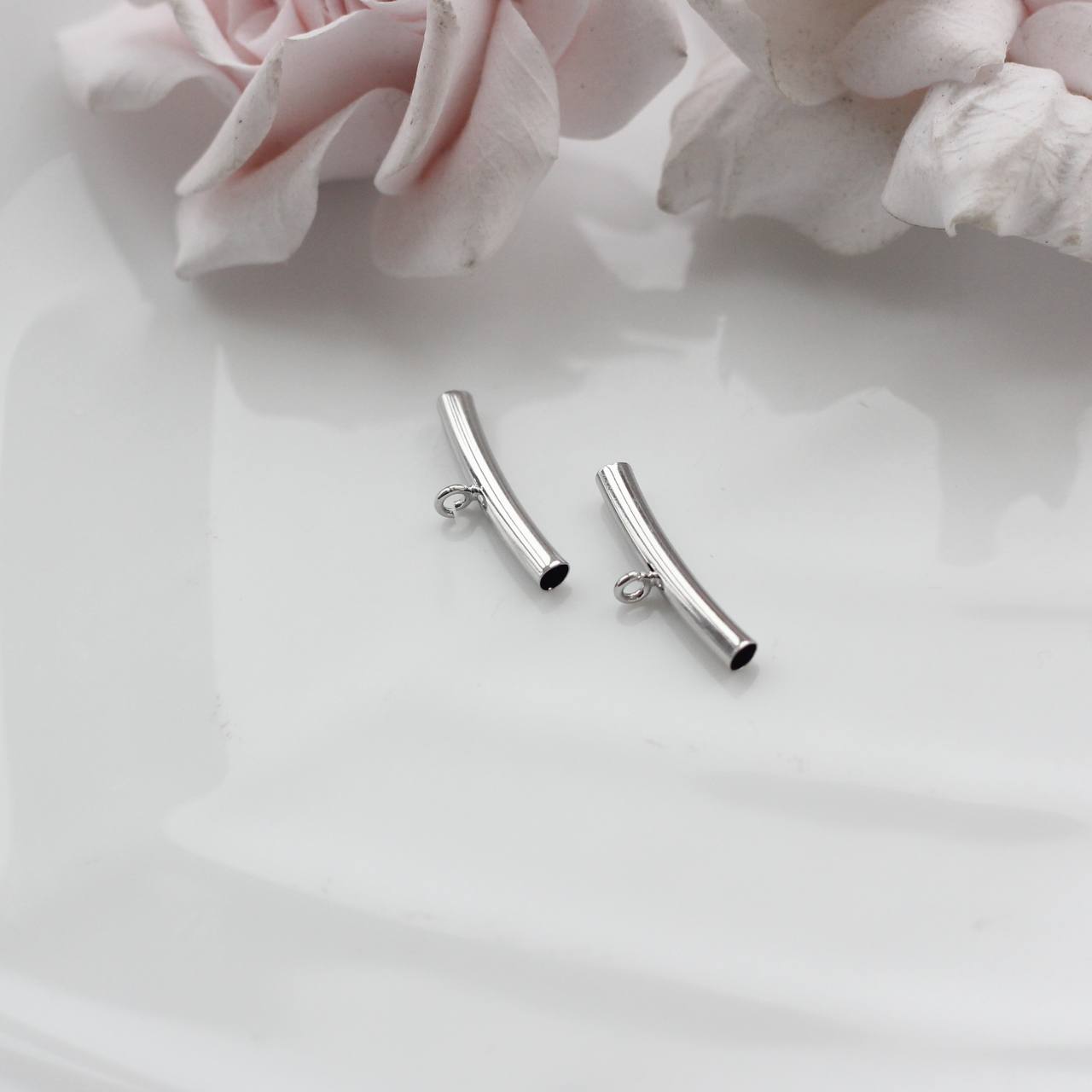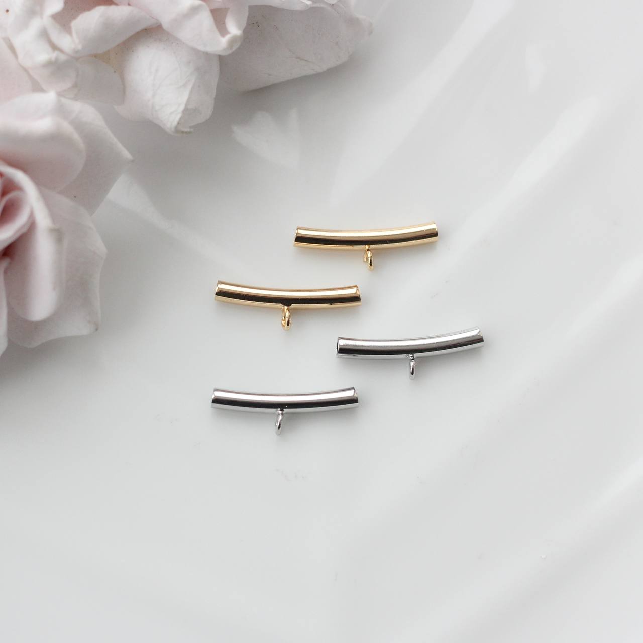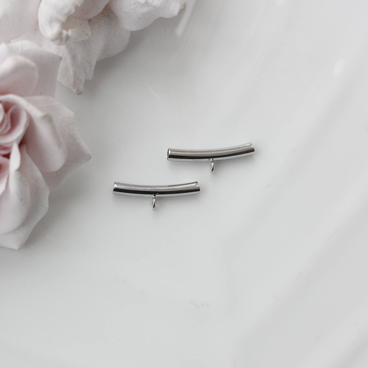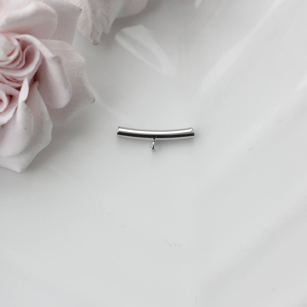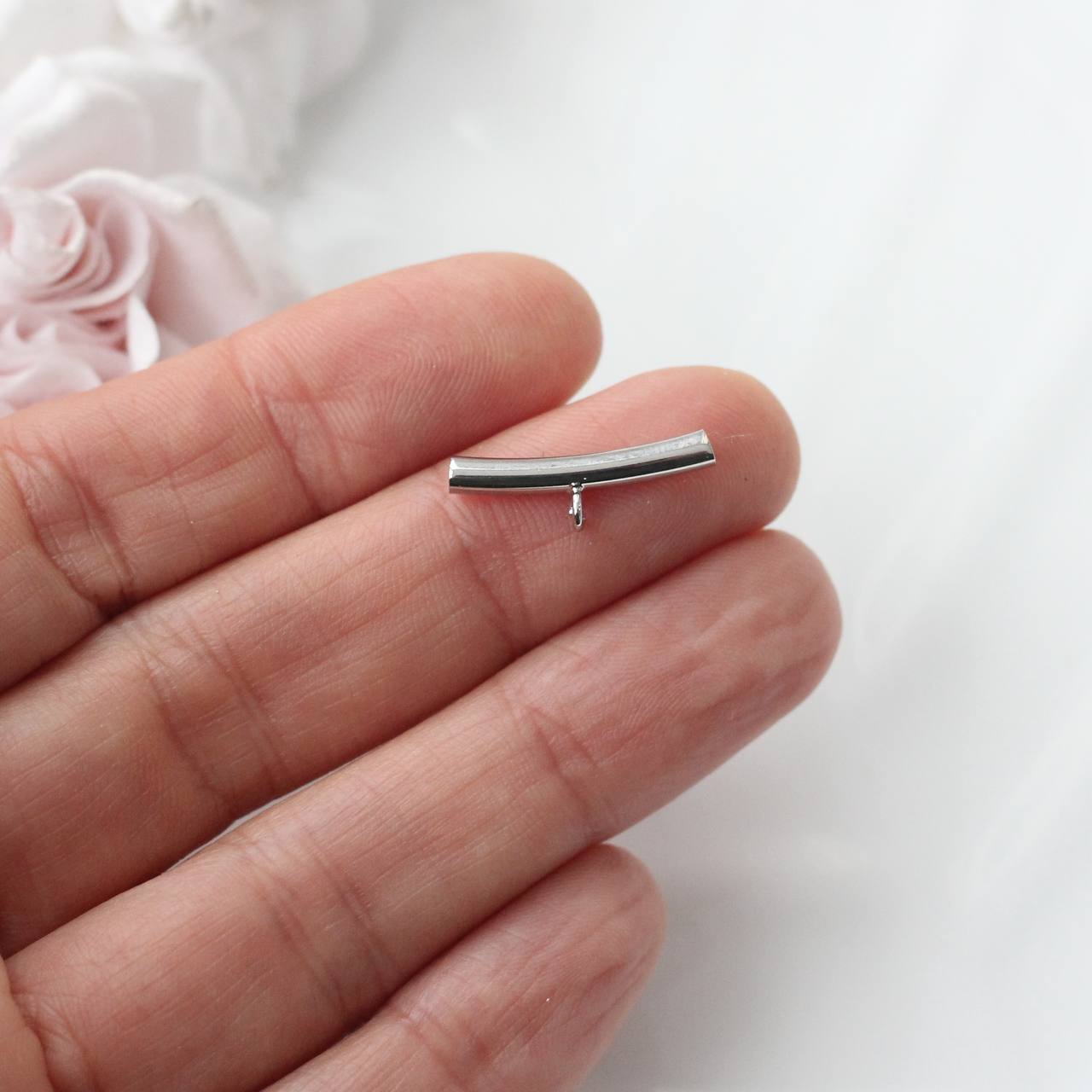 Изящный спейсер в форме слегка изогнутой трубочки с миниатюрной петелькой — функциональный и очень эстетичный элемент для авторских украшений. Лаконичная форма создаёт чистую линию в дизайне, а петелька позволяет добавить подвеску или акцентный элемент, не перегружая композицию.
