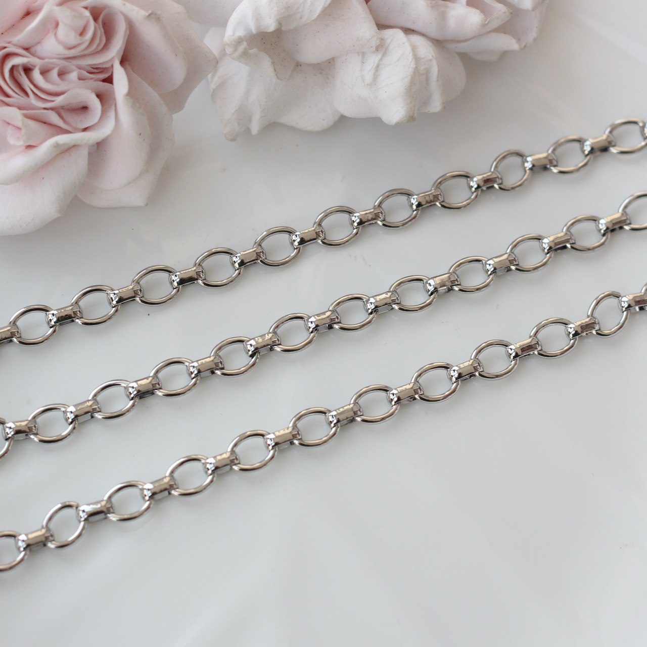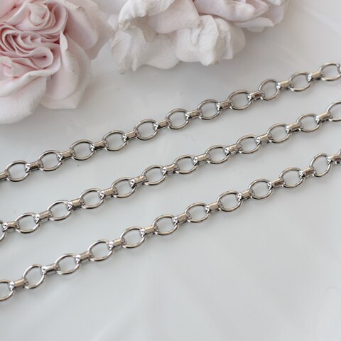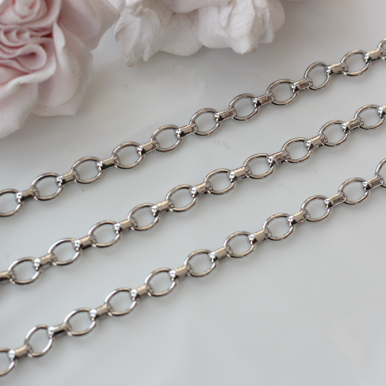 Декоративная металлическая цепь с классическими овальными звеньями аккуратной формы. Универсальный вариант для создания украшений в современном, минималистичном или базовом стиле.