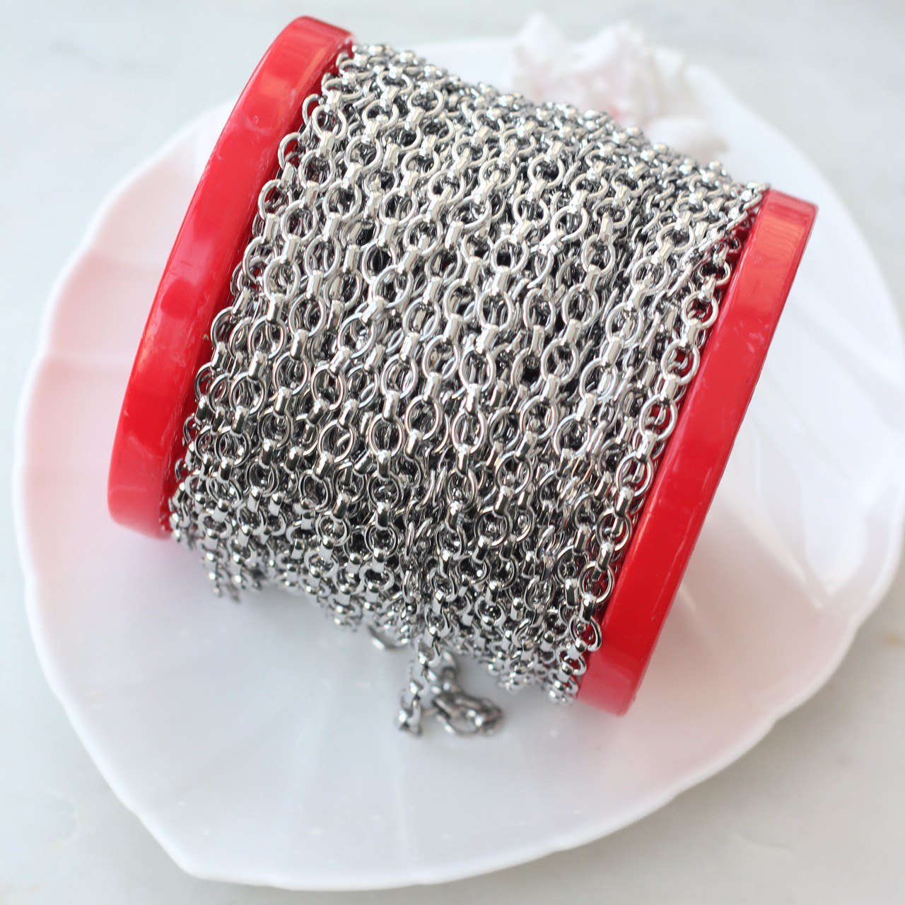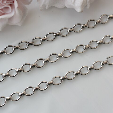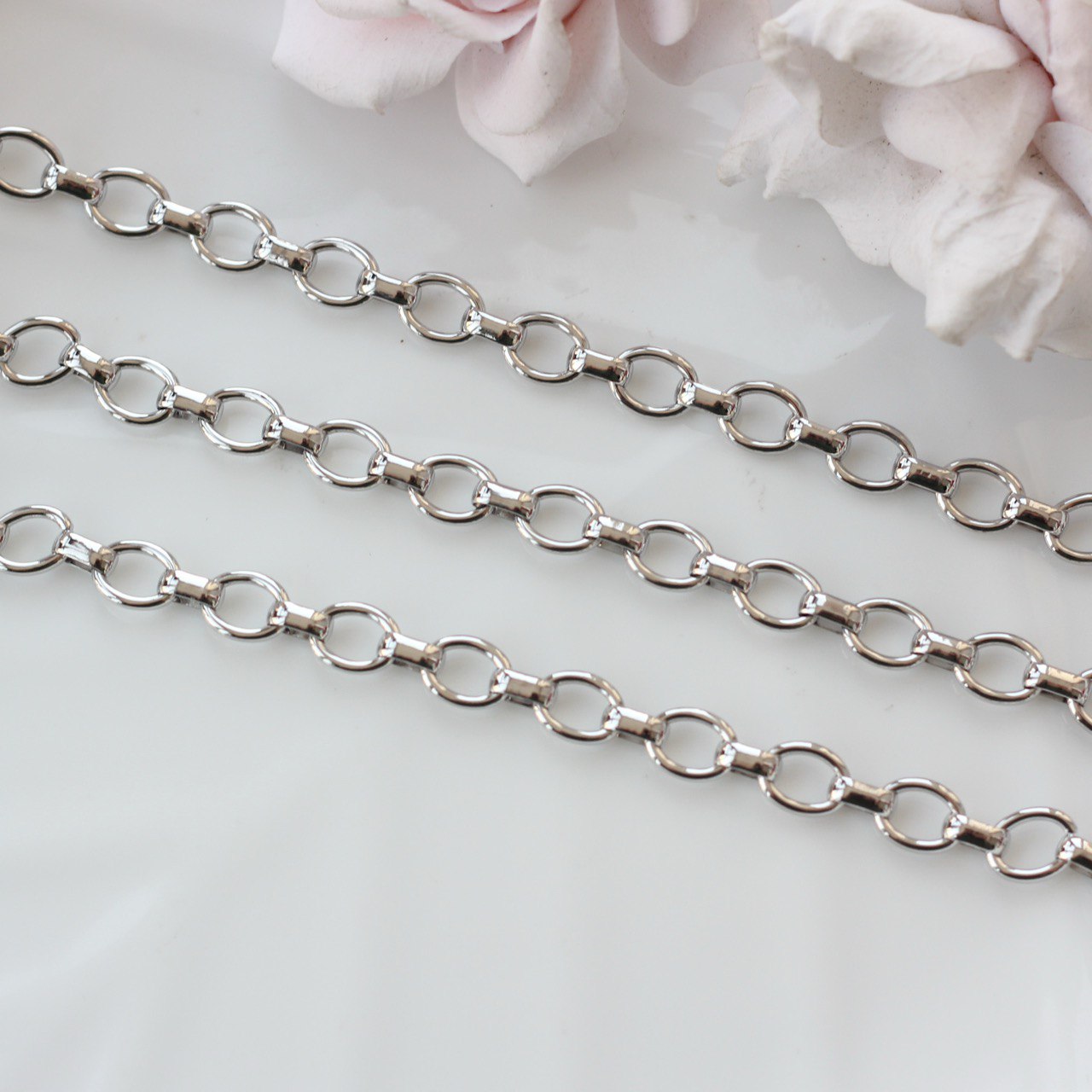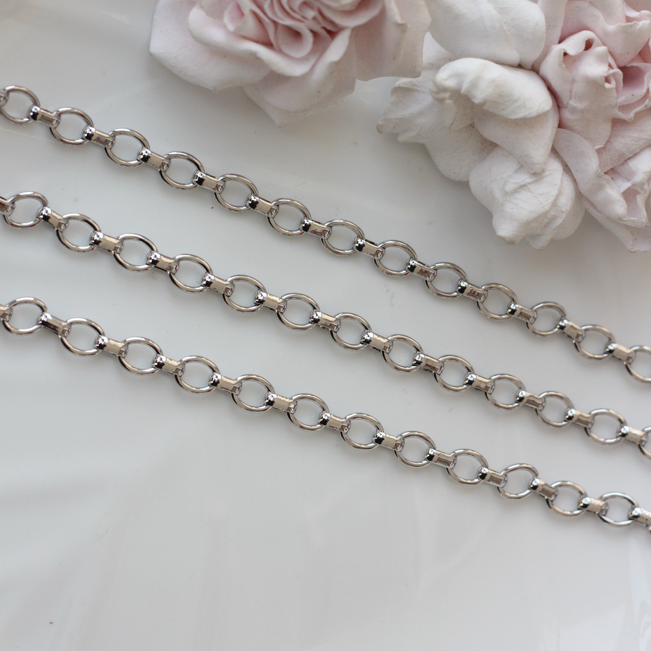 Декоративная металлическая цепь с классическими овальными звеньями аккуратной формы. Универсальный вариант для создания украшений в современном, минималистичном или базовом стиле.