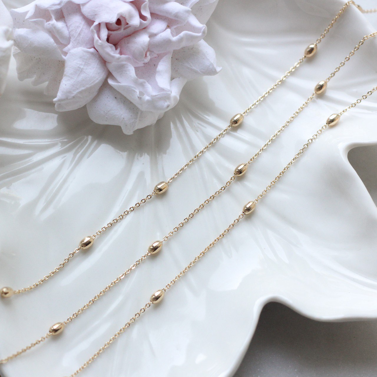 Цепочка размером 1.8*1,1мм, размер бусины 5*3 мм.