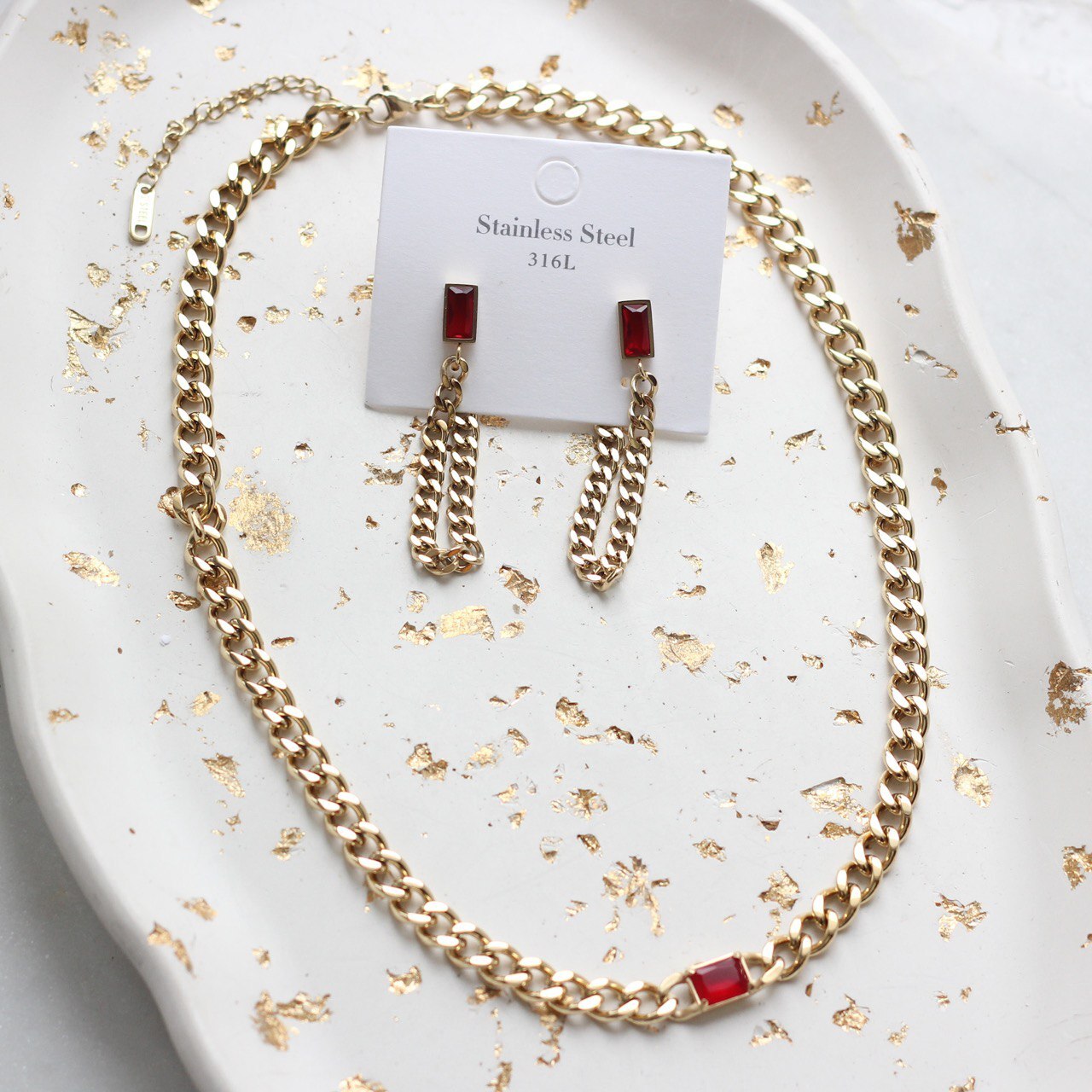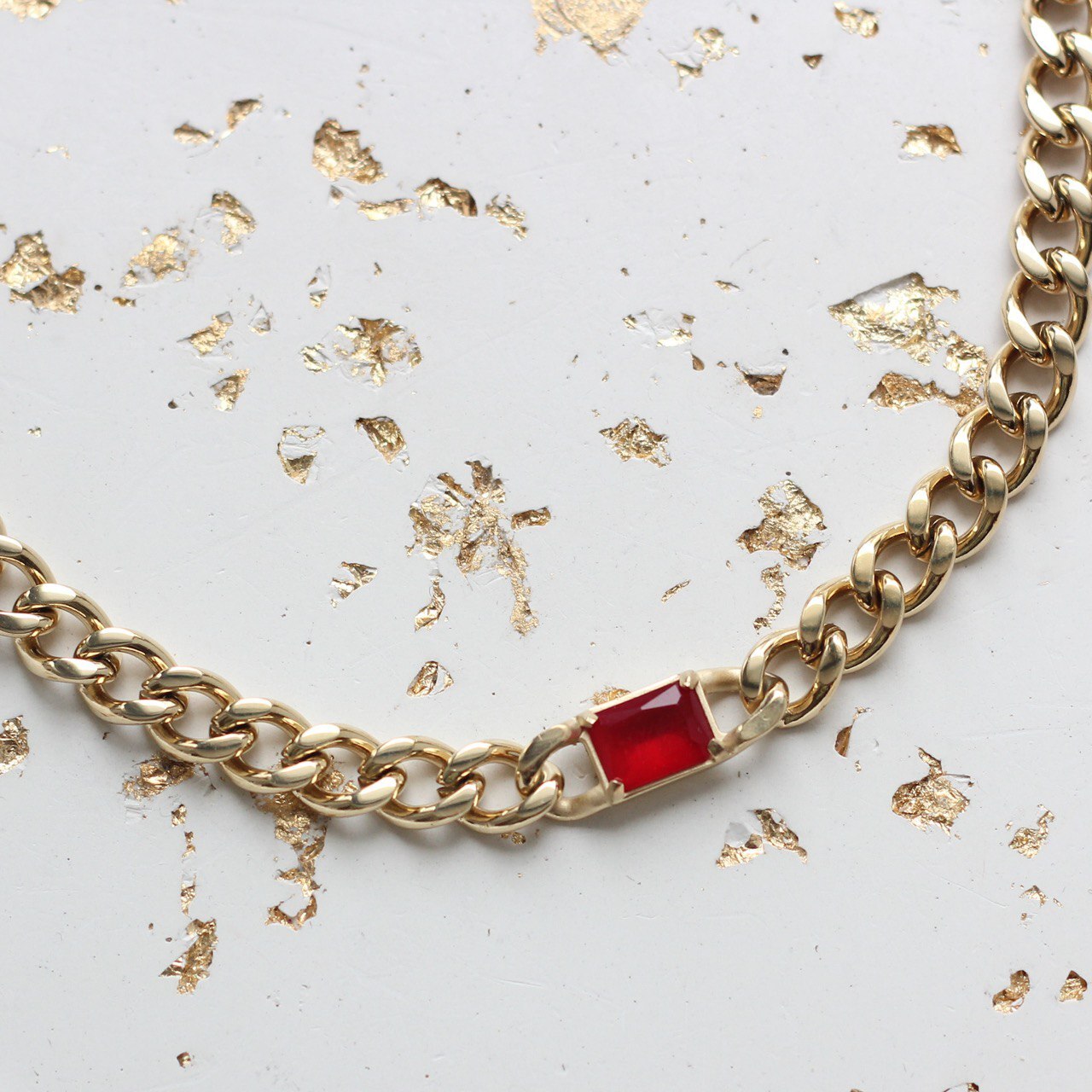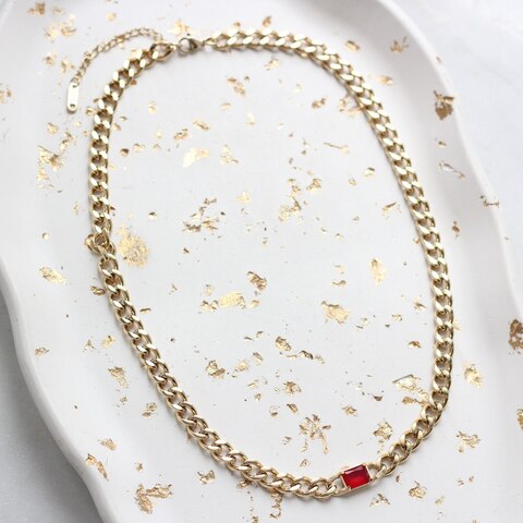 Готовая цепочка с красным цирконом, позолоченная.