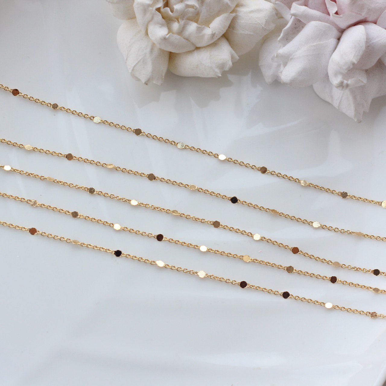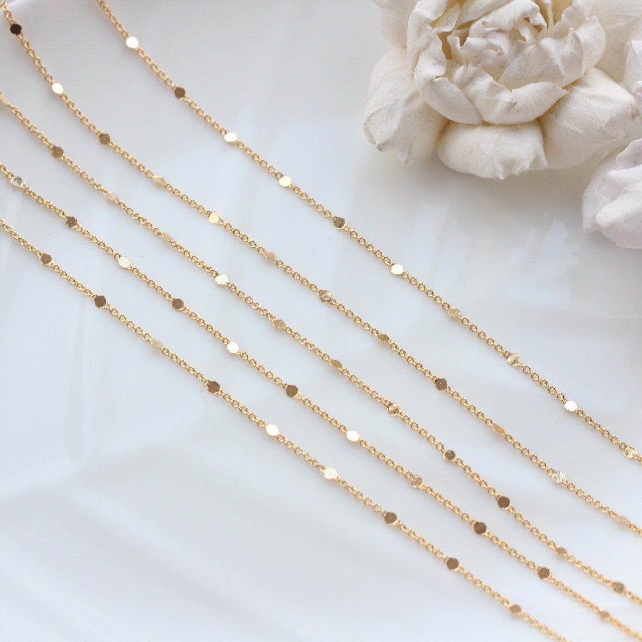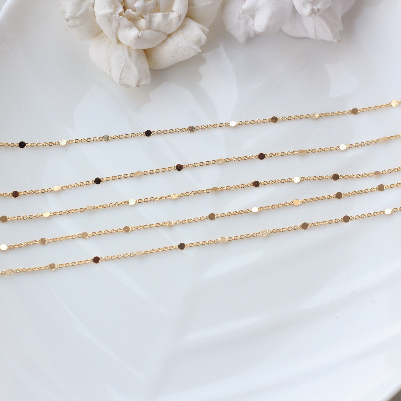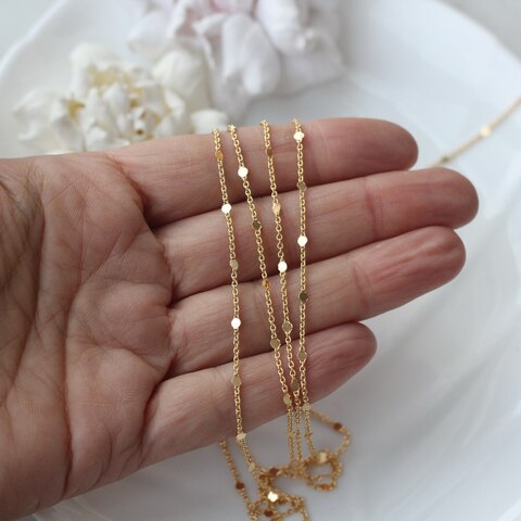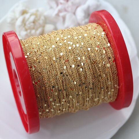Изящная цепочка с миниатюрными декоративными элементами — незаменимая фурнитура для создания авторских украшений. Тонкая работа и стойкое позолоченное покрытие придают изделию роскошный вид. Отлично подойдёт для изготовления колье, браслетов, серёг и других декоративных аксессуаров.