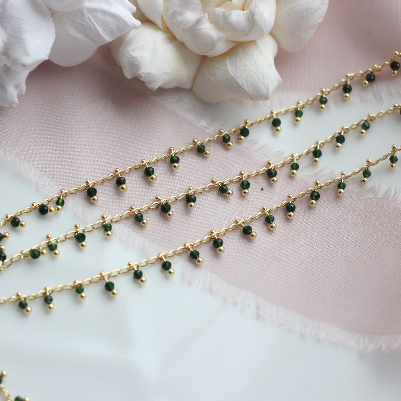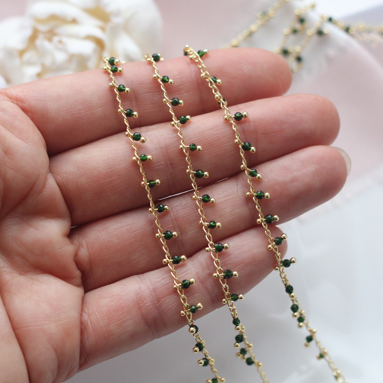 Цепочка с подвесками из цирконов. Цвет цирконов - зелёные