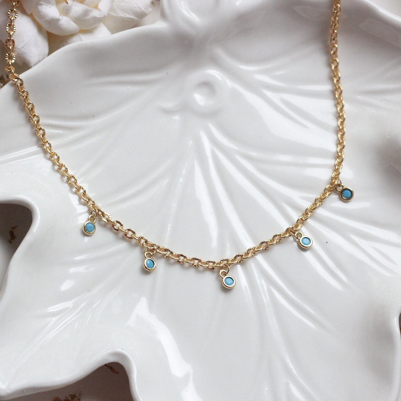 Элегантная цепочка с подвесками с фианитами голубого цвета для романтичных и лаконичных образов.