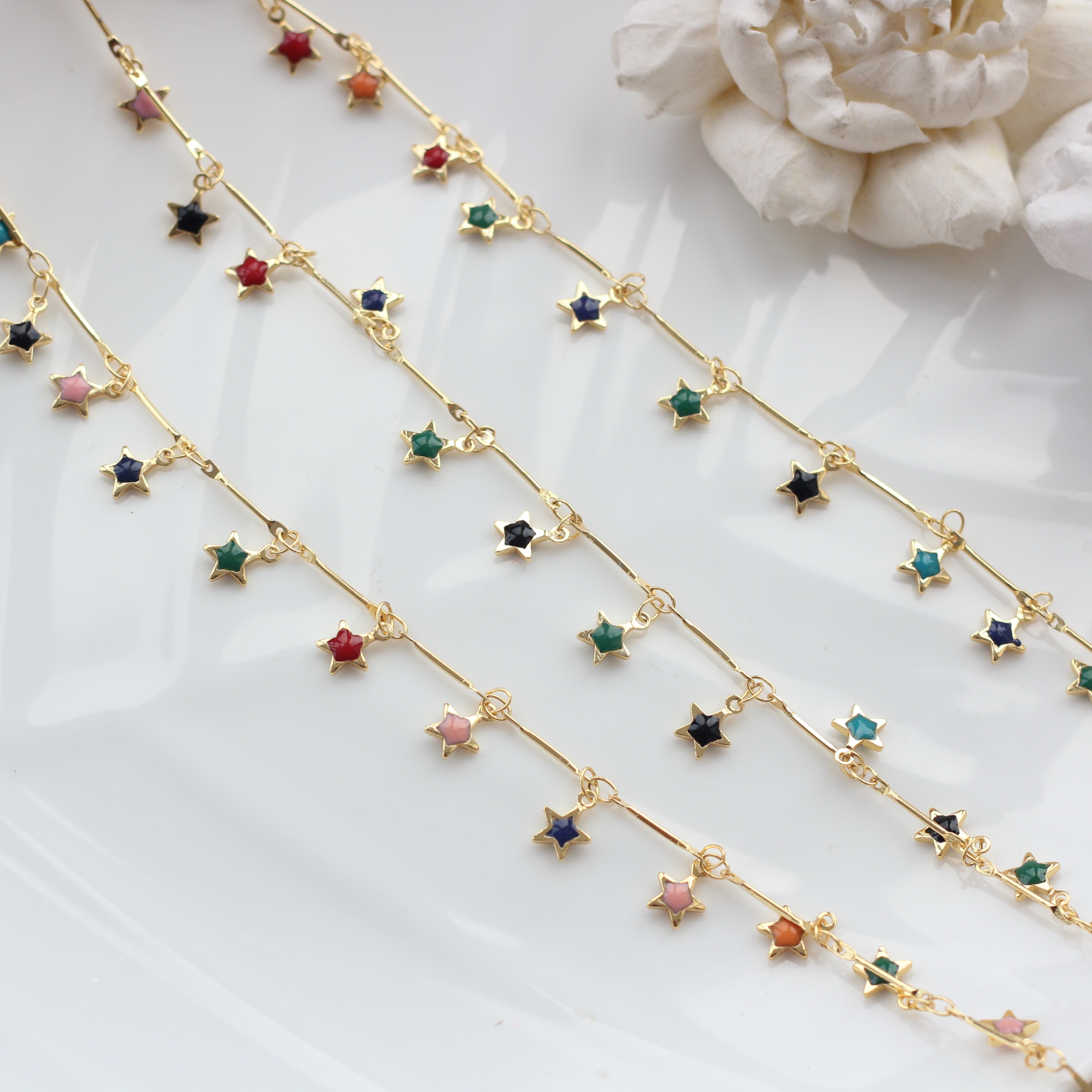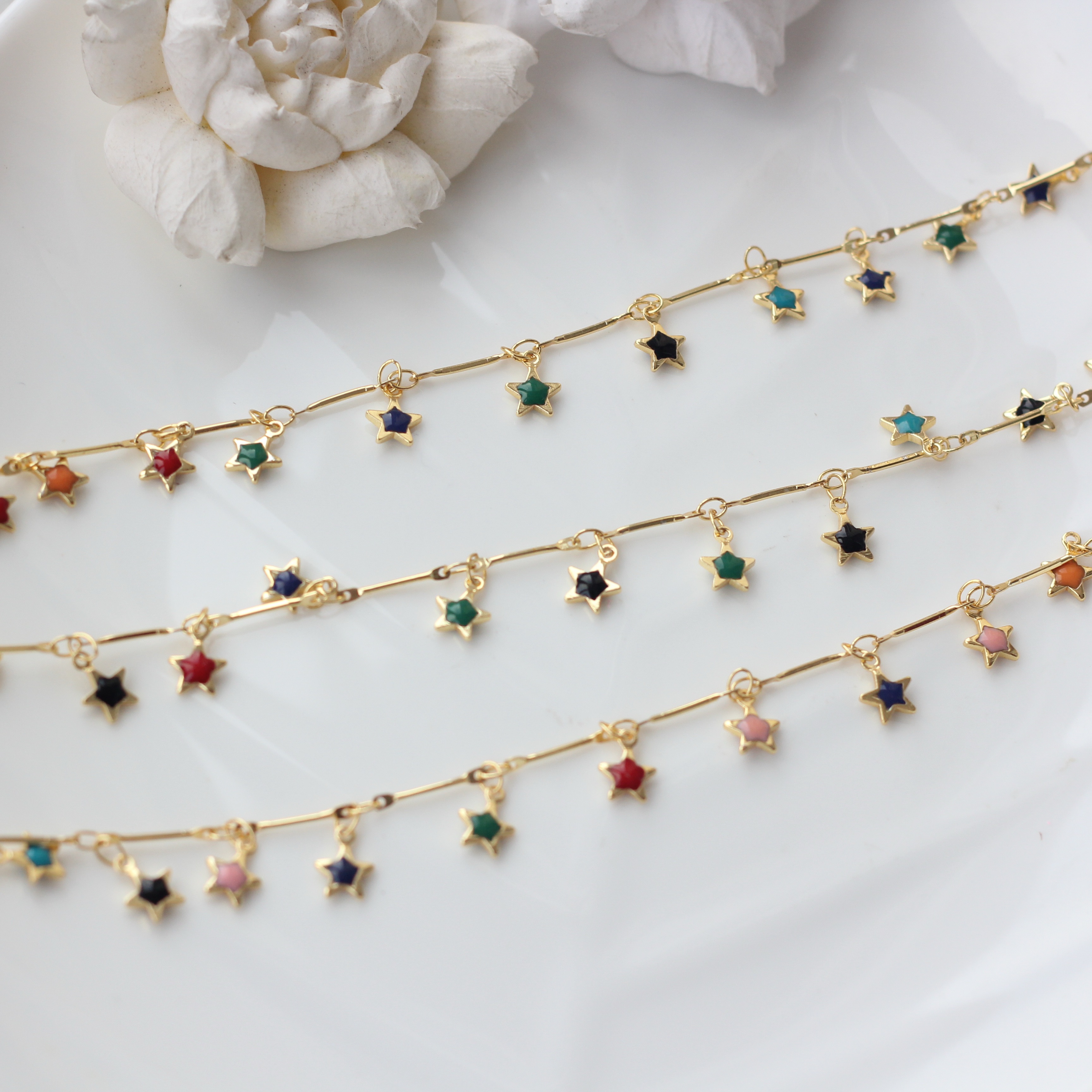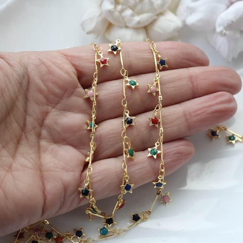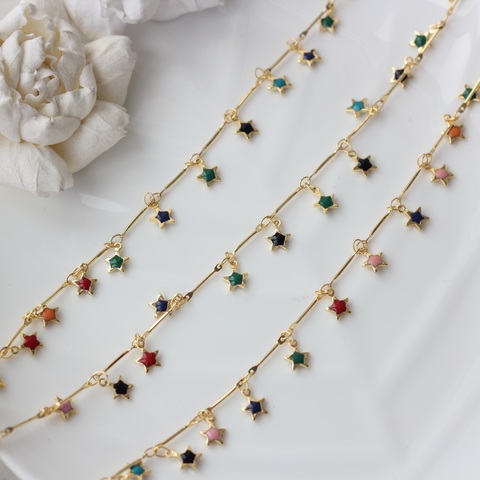Цепочка с цветными звездами , позолота