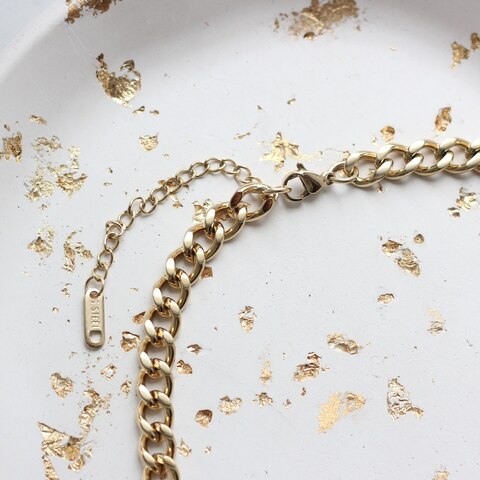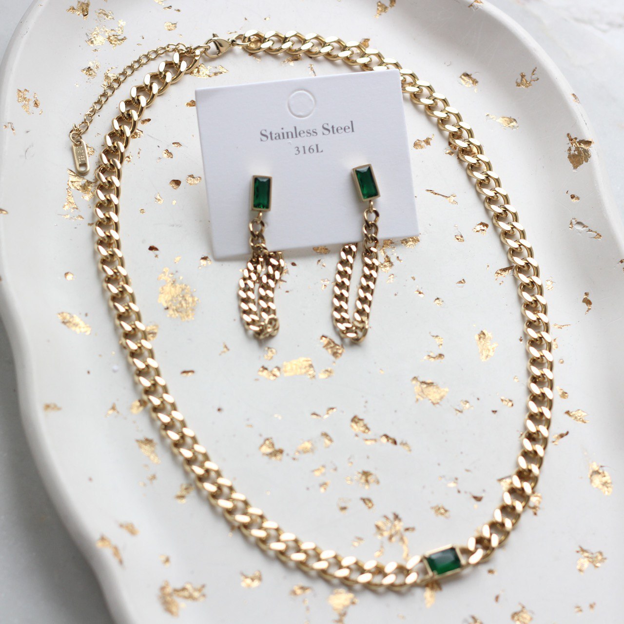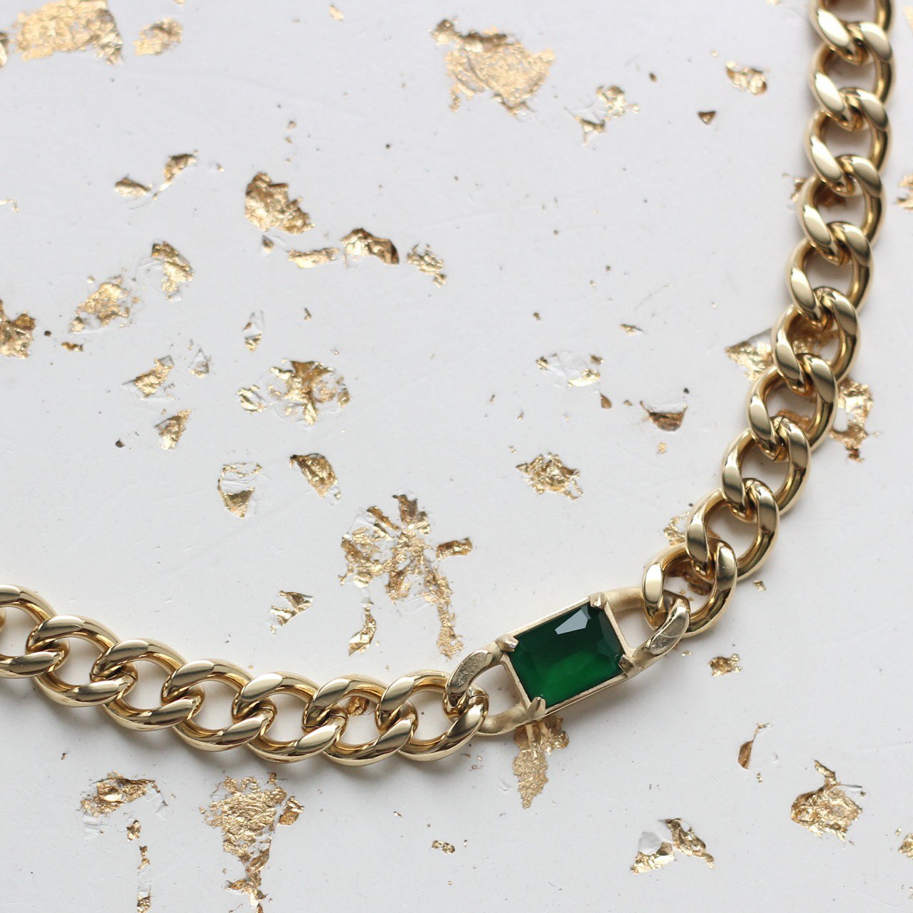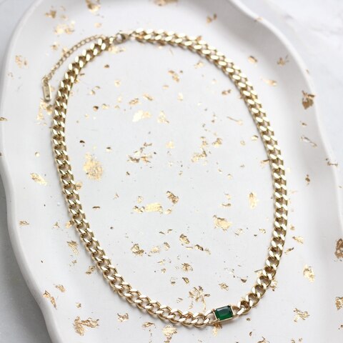 Готовая цепочка с зелёным цирконом, позолоченная.