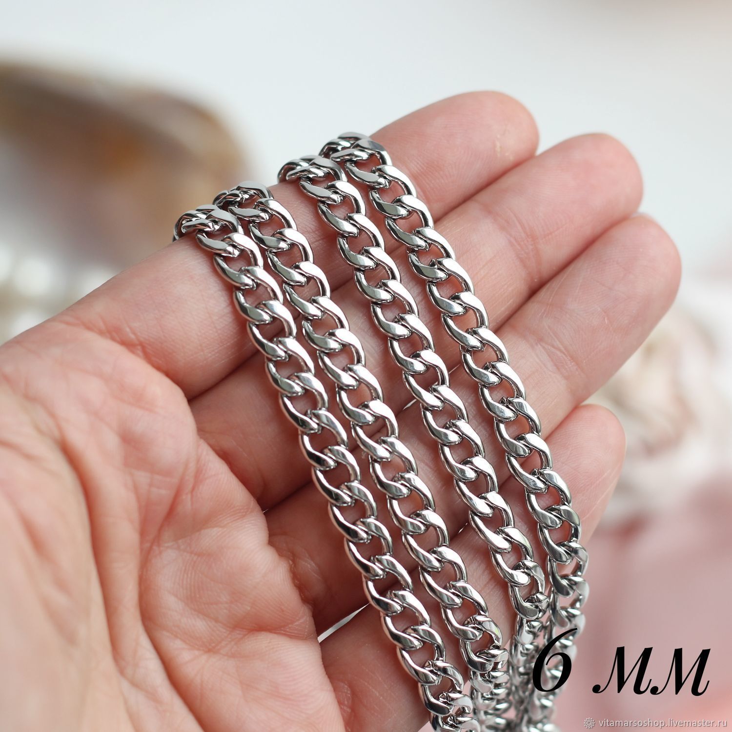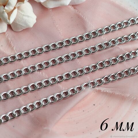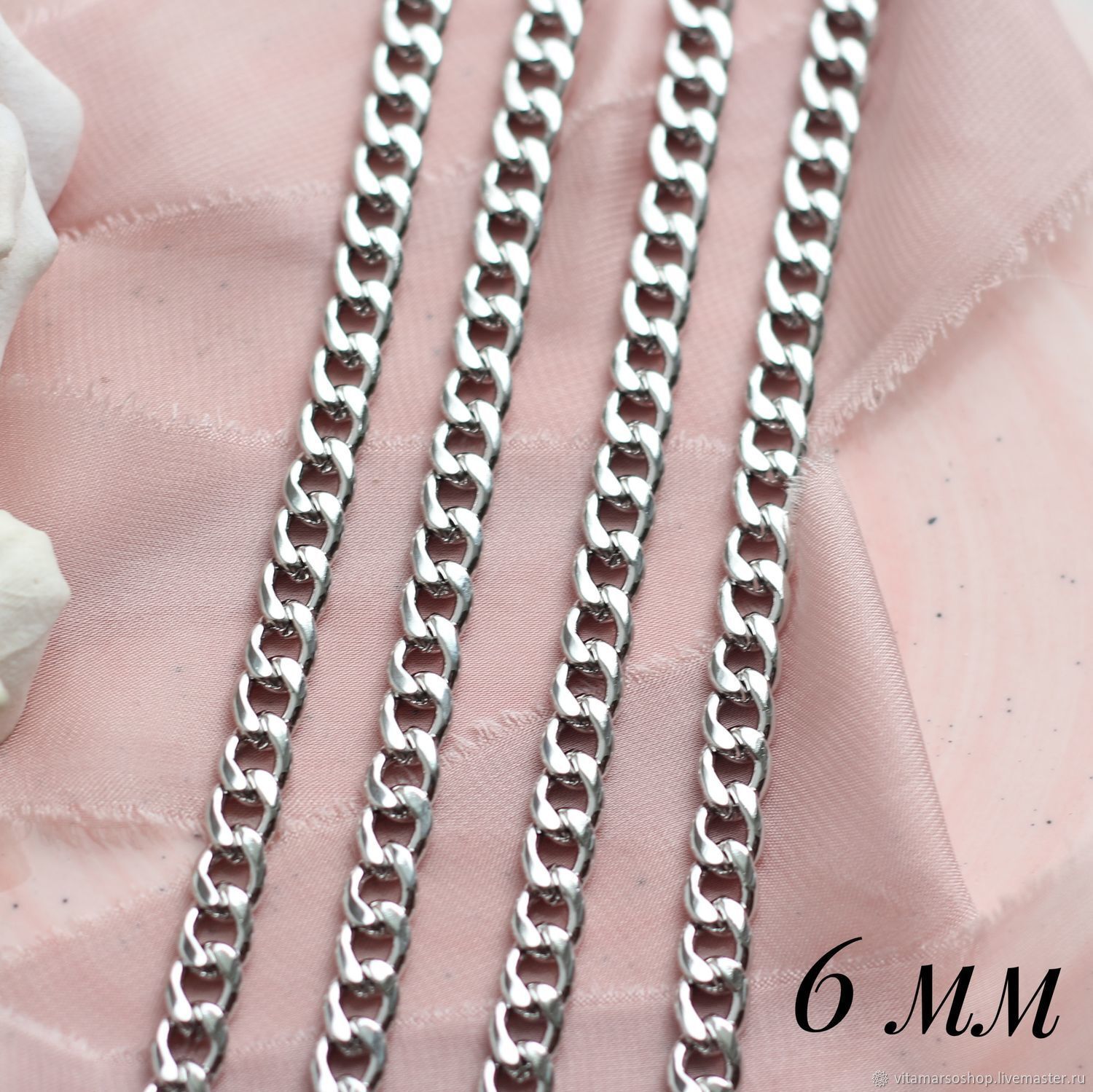 Цепочка плоская, ширина 6 мм. Латунь с родиевым покрытием