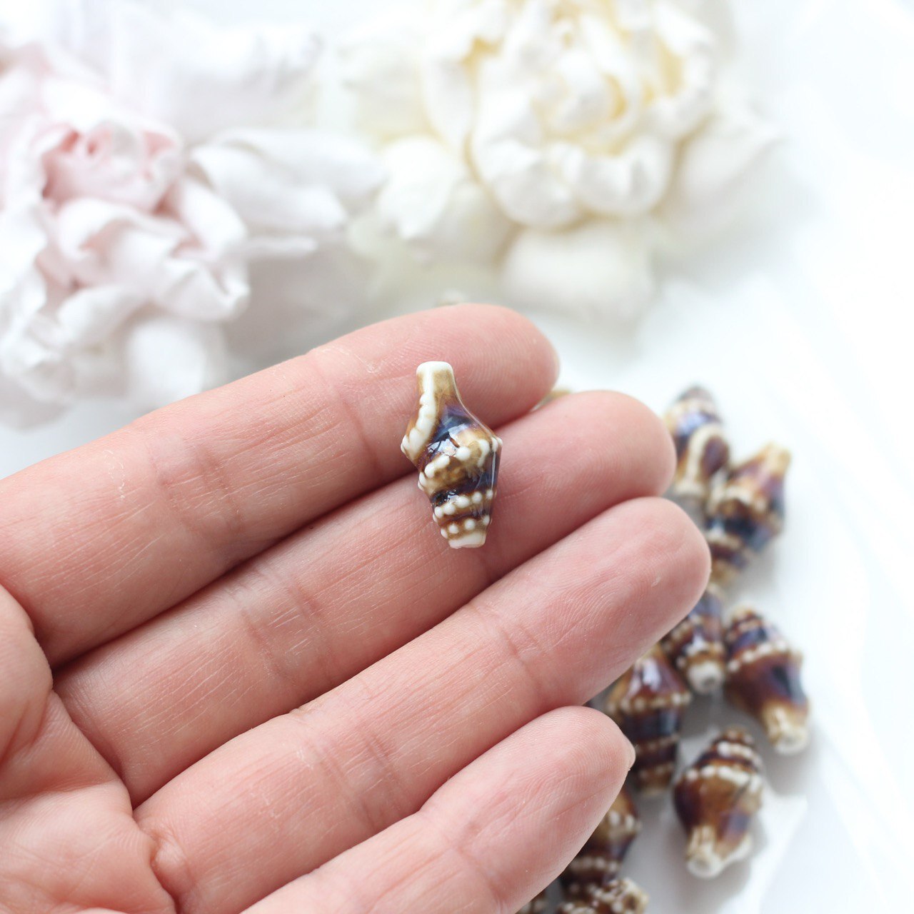 Подвеска выполнена в форме бусины-спейсера, прекрасно подойдет на серьги, кулоны, также отличный вариант для браслетов и колье в морском стиле. Фарфоровая ракушка полностью имитирует природную, легкая и изящная.