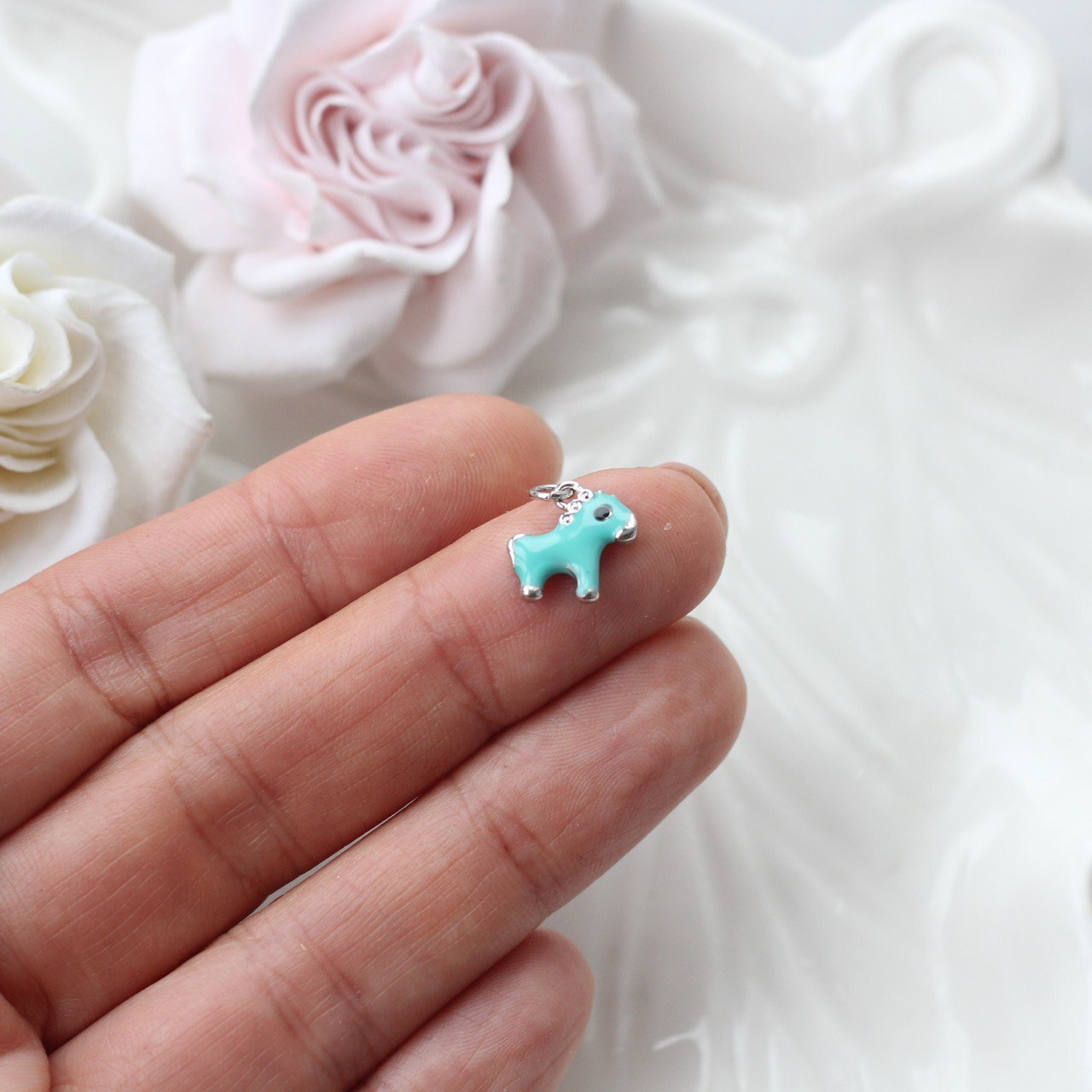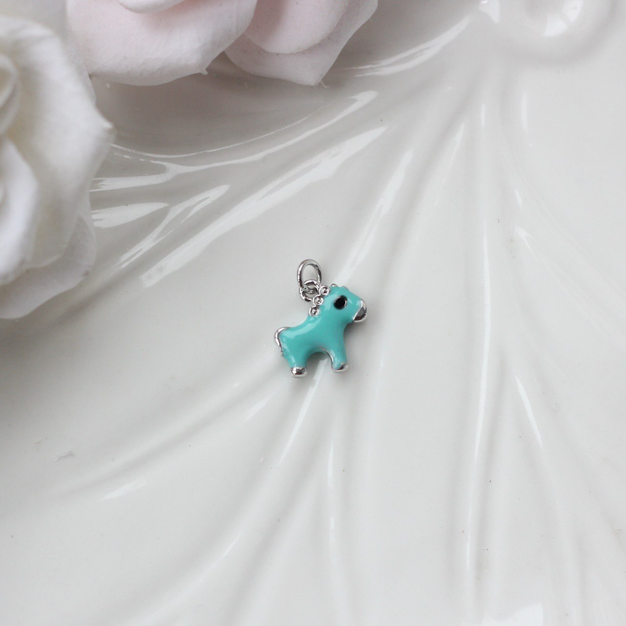 Очаровательная подвеска в форме лошадки, выполненная из металла с покрытием бирюзовой эмалью и позолоченными деталями. Символ свободы, движения и удачи — станет нежным акцентом в любом украшении.