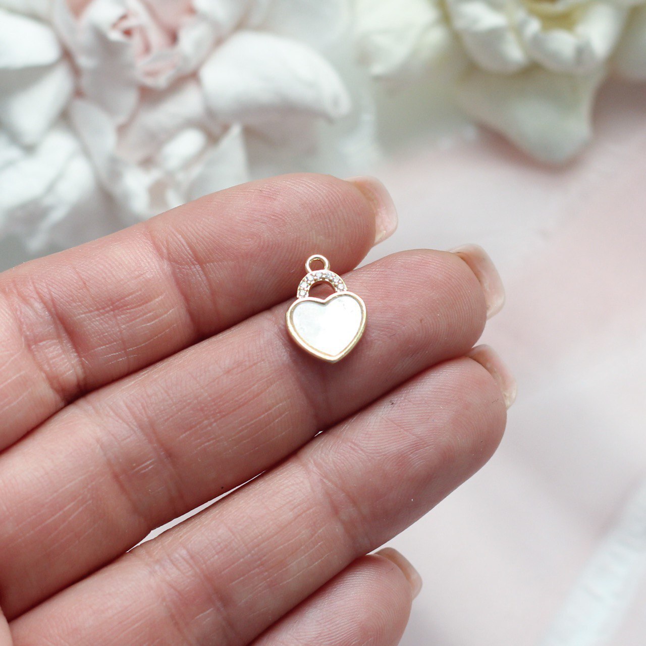 Подвеска Замочек в форме сердца с перламутром и фианитами
