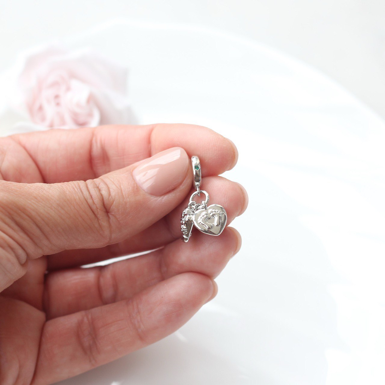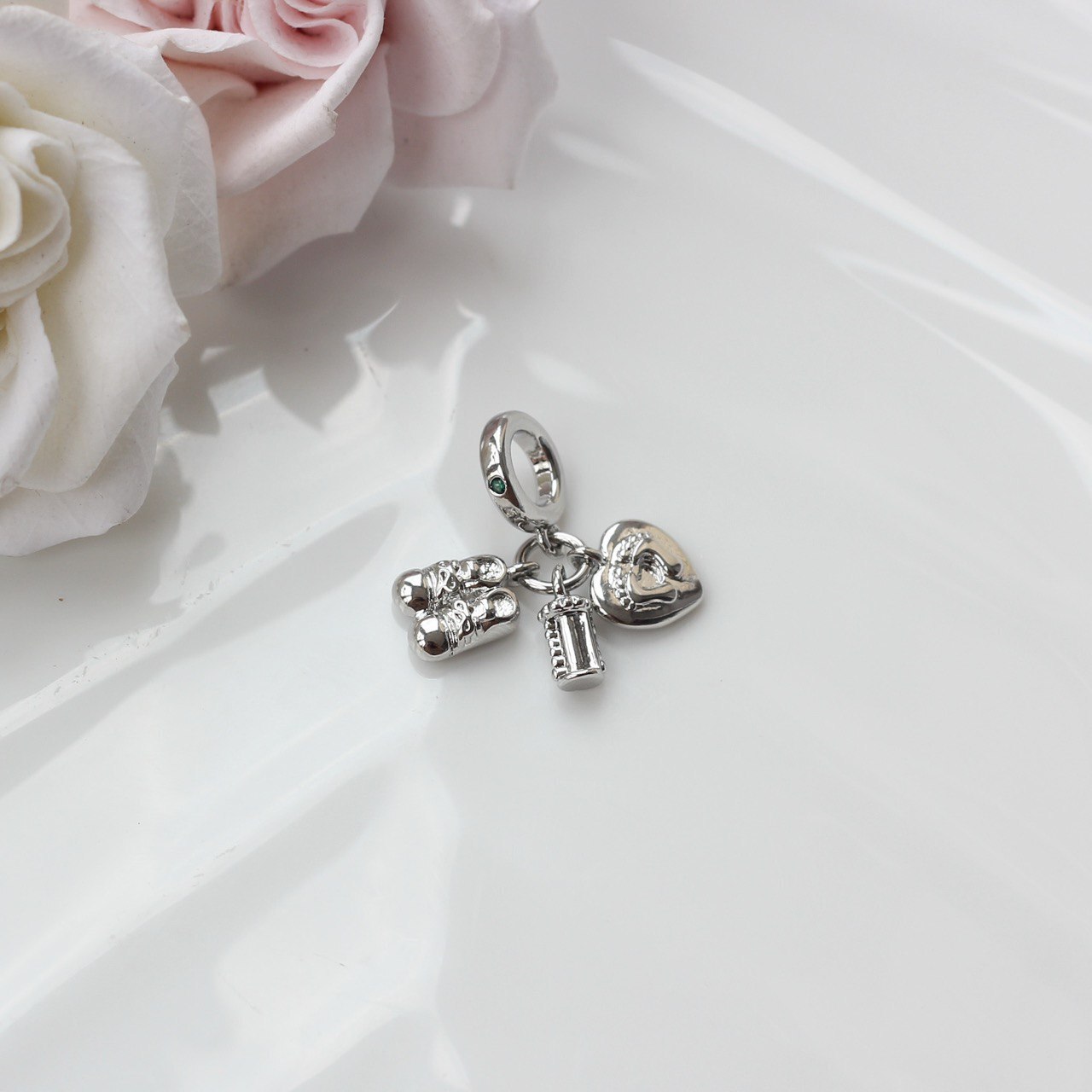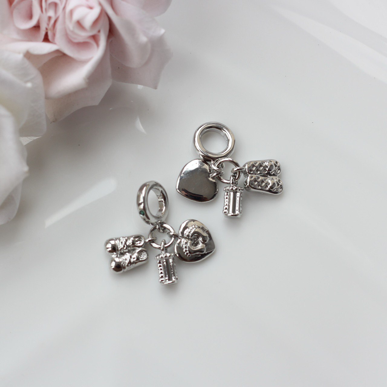 Подвески на бейле Малыш (пинетки, бутылочка и сердце со следочками).