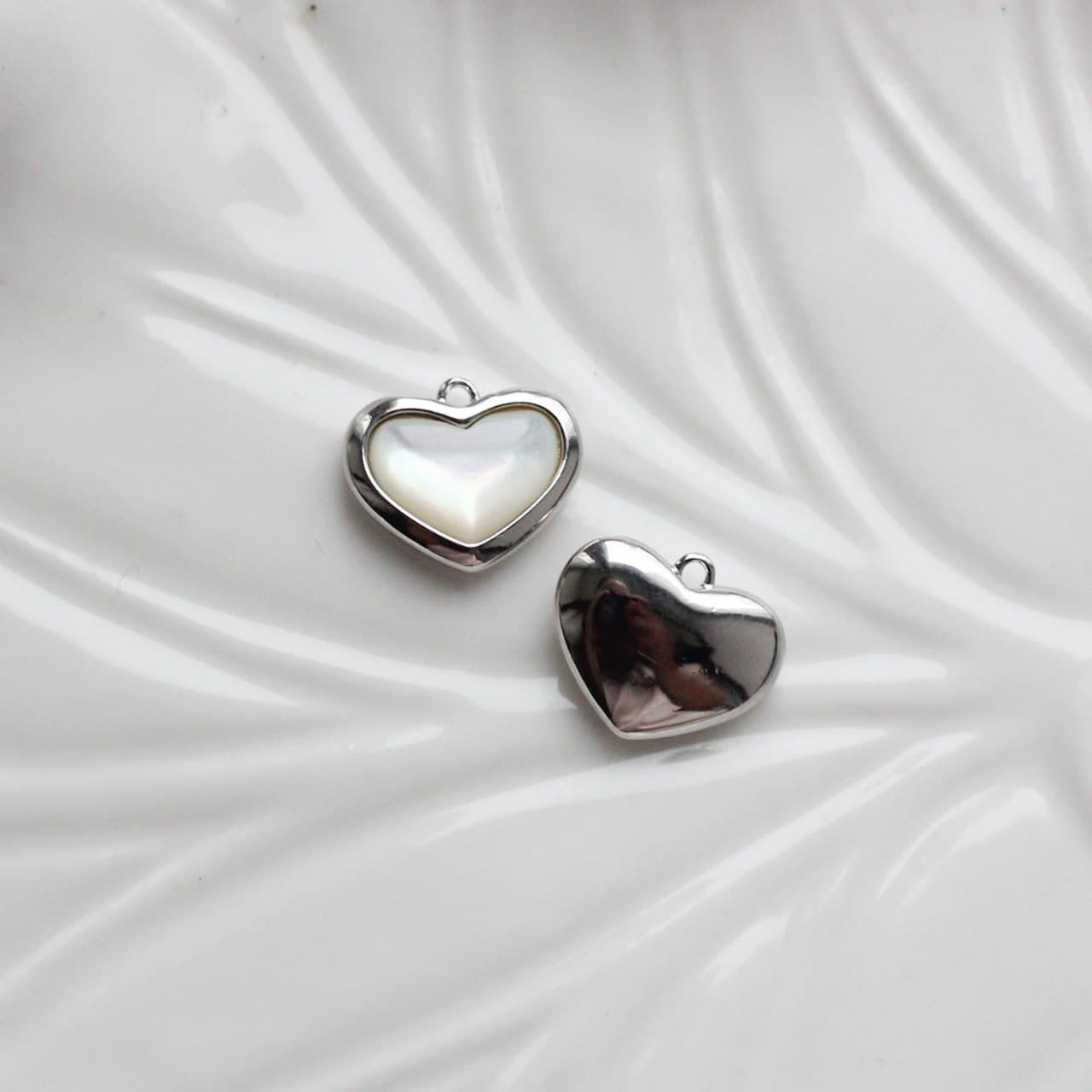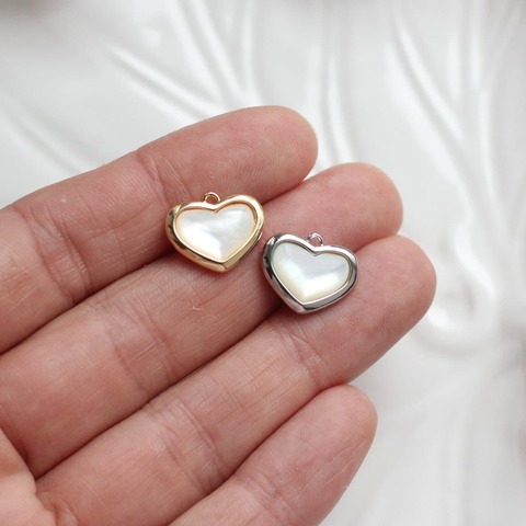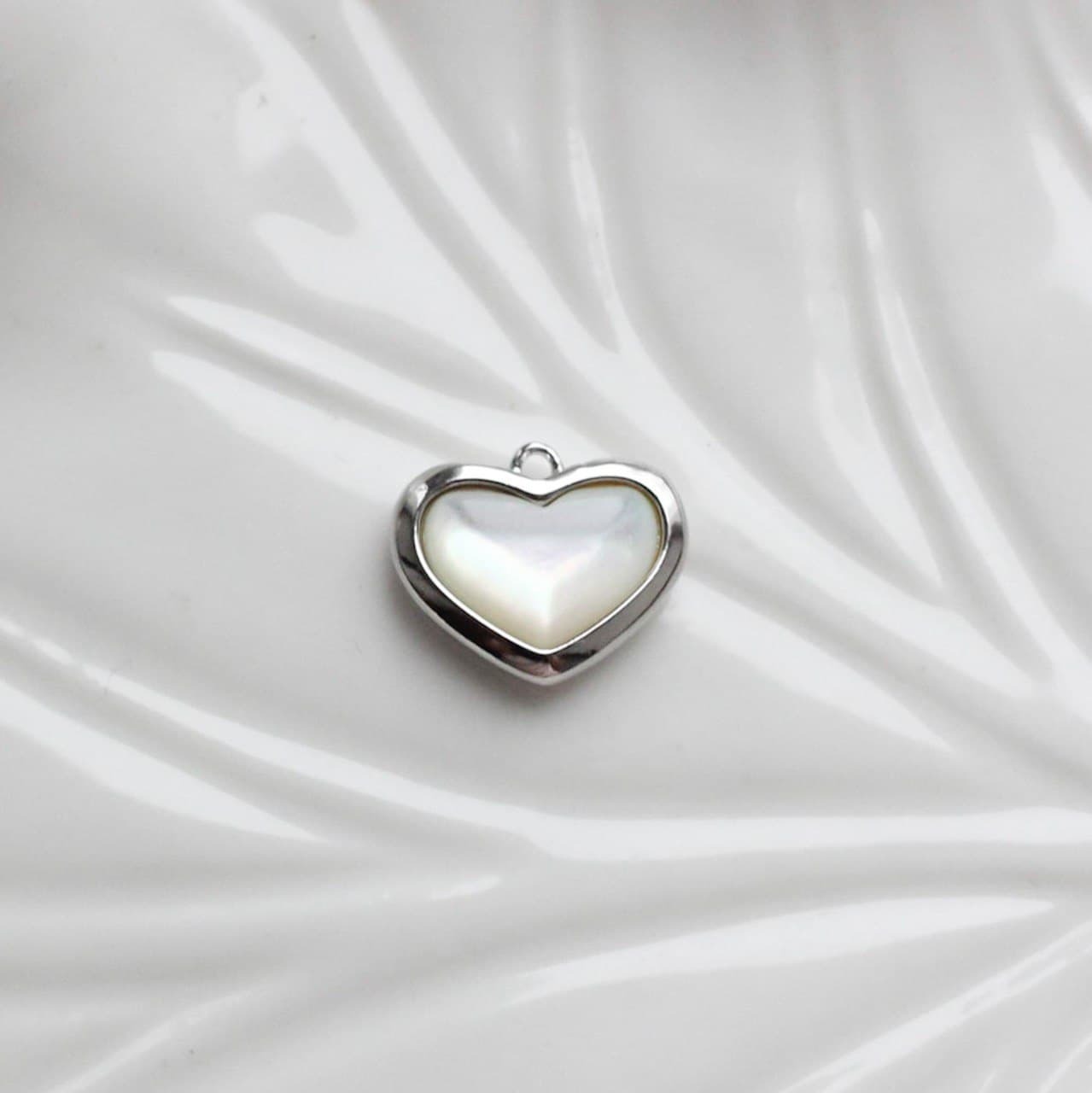 Подвеска Сердце с молочным перламутром, гладкая окантовка