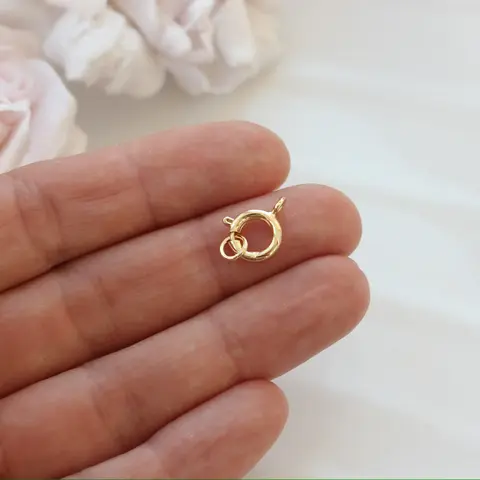 Классический круглый замок-карабин — надёжный и аккуратный элемент для сборки украшений. Благодаря своей форме он выглядит эстетично и гармонично дополняет как минималистичные, так и более сложные изделия.
