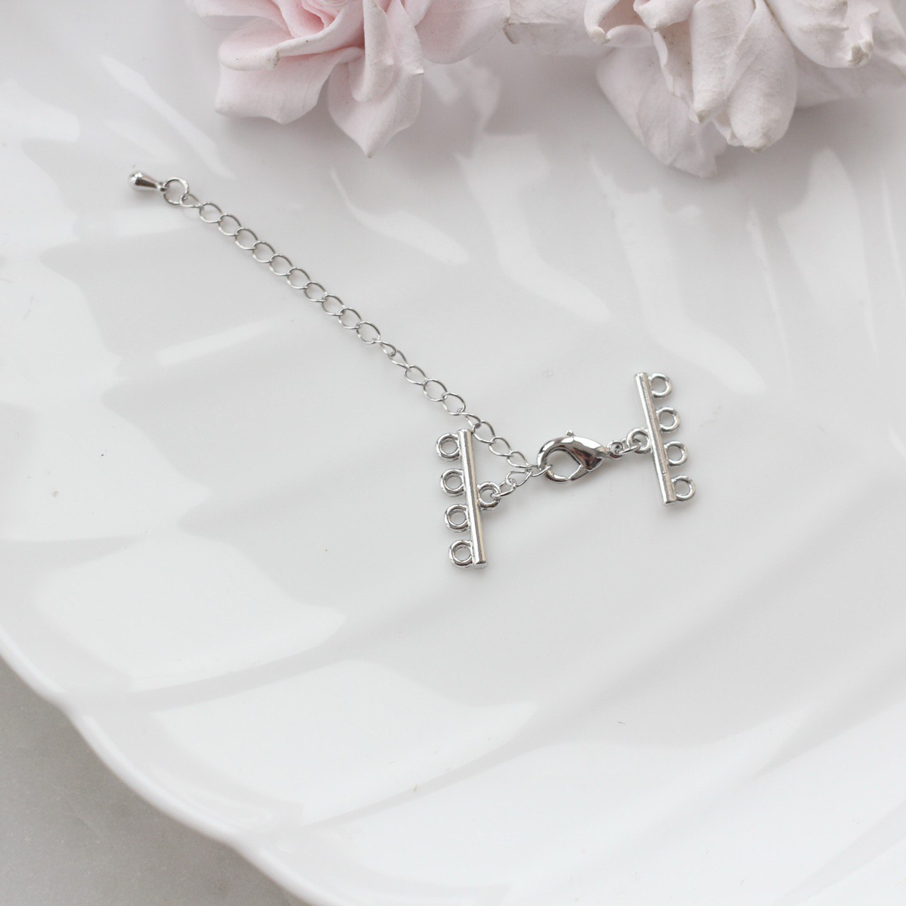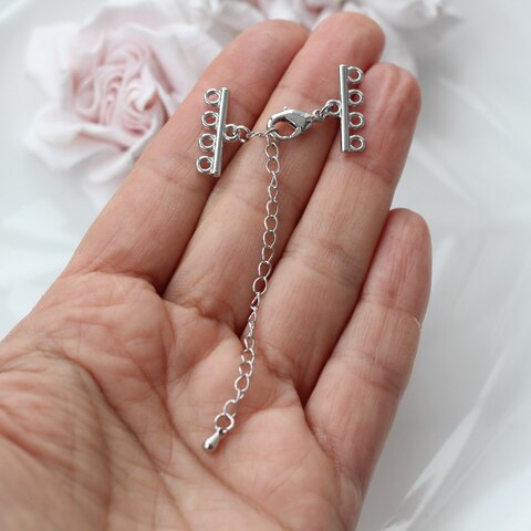 Функциональный и аккуратный замок-карабин с цепочкой-удлинителем и двумя коннекторами, предназначенный для создания многорядных украшений на 5 нитей. Позволяет собрать сложное колье с ровной посадкой, сохранив симметрию и аккуратный внешний вид изделия.