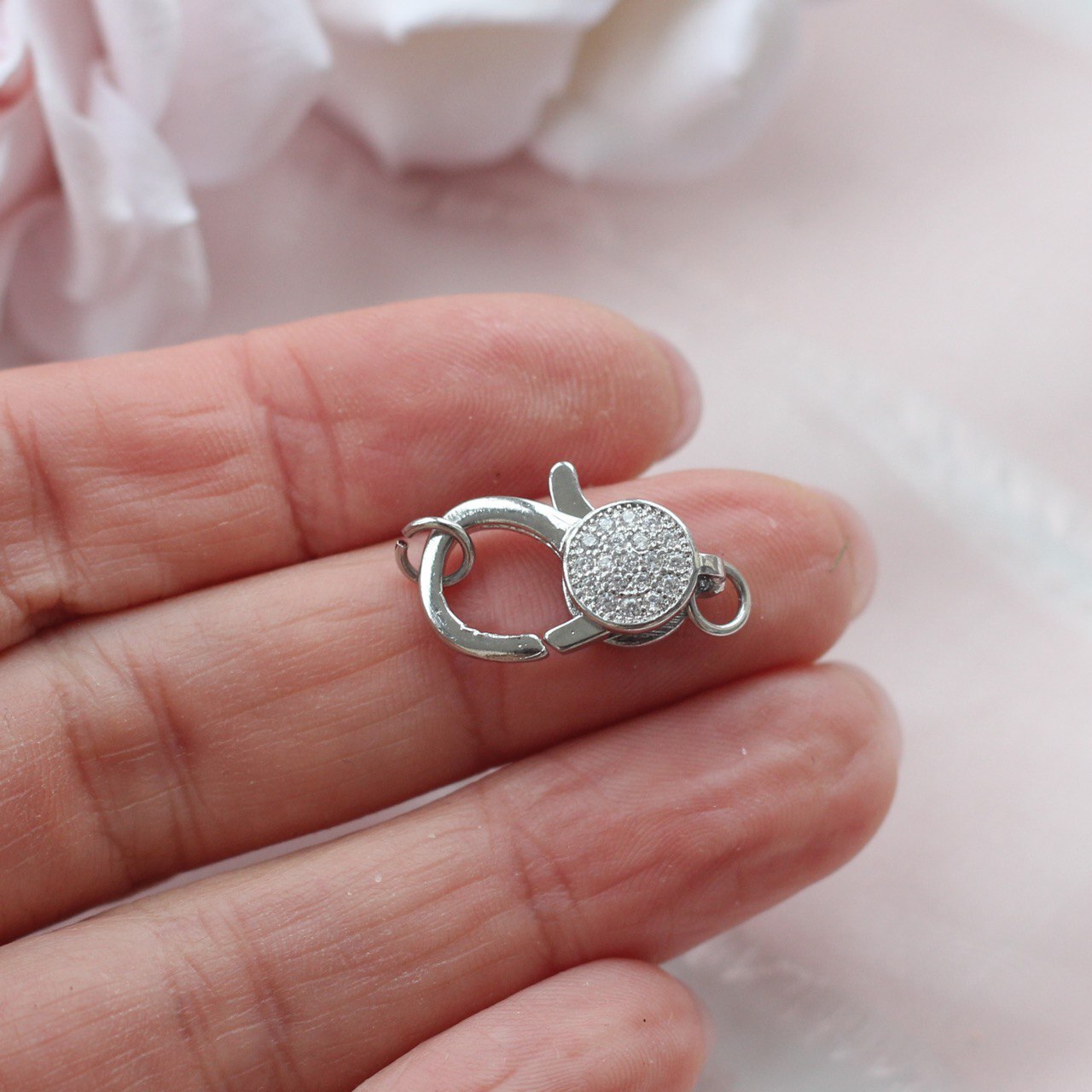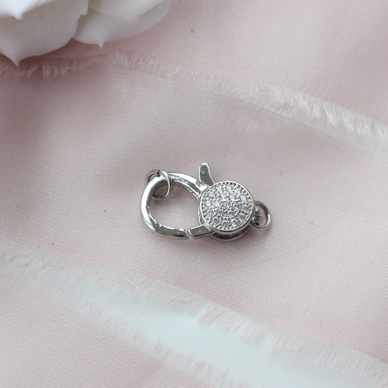Замок карабин с фианитами. Замок лобстер.