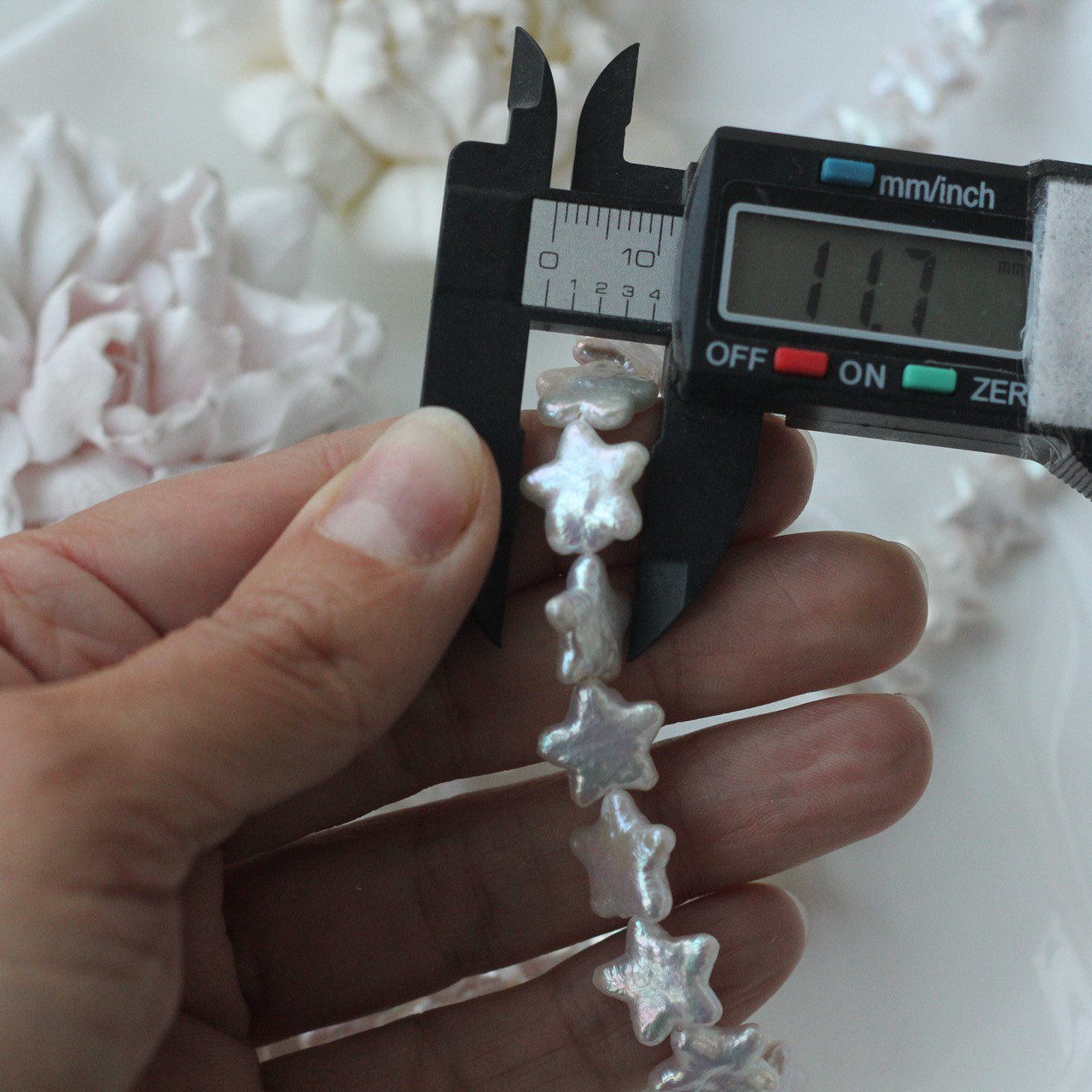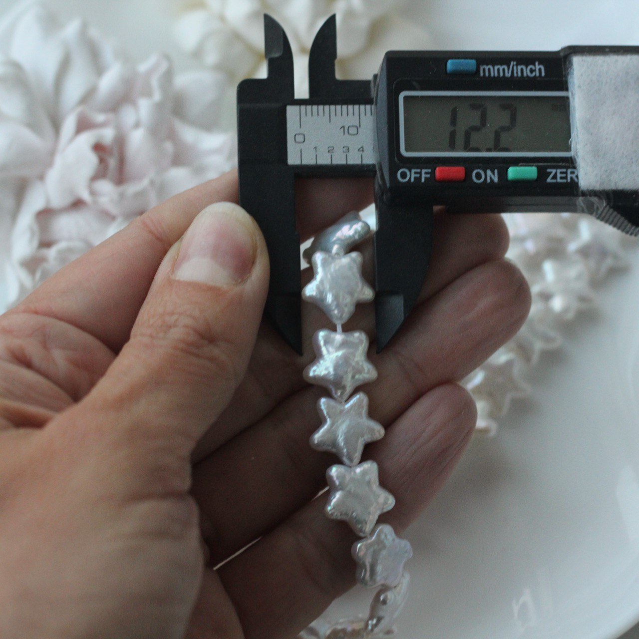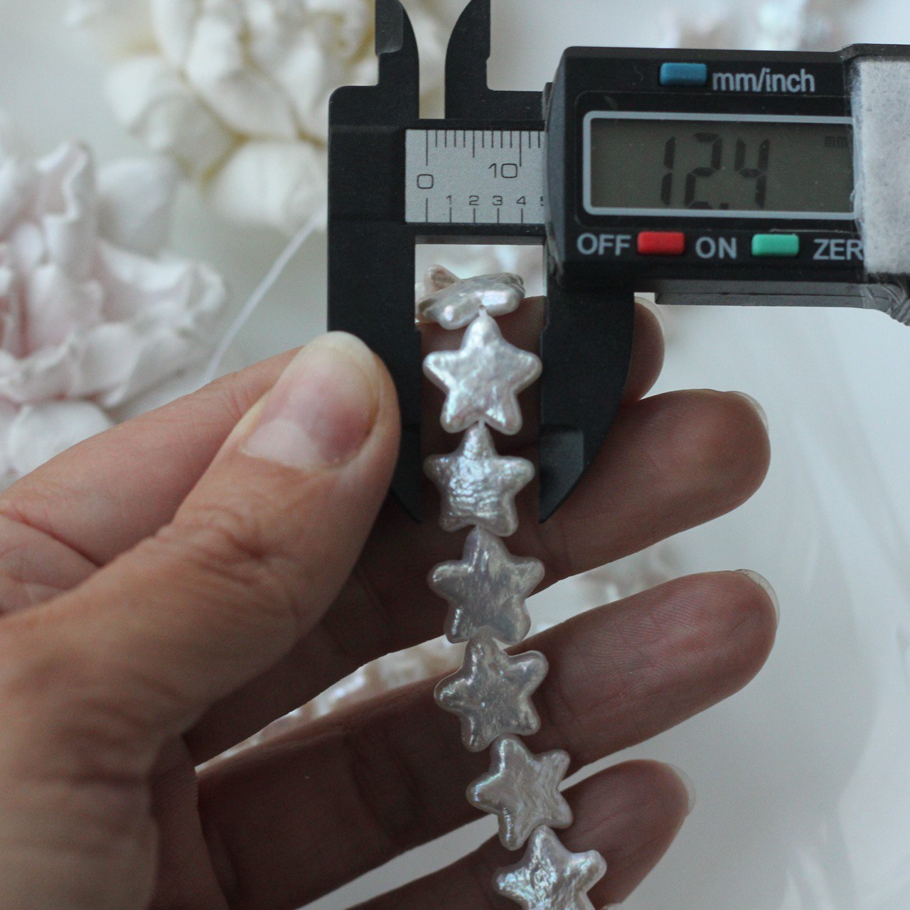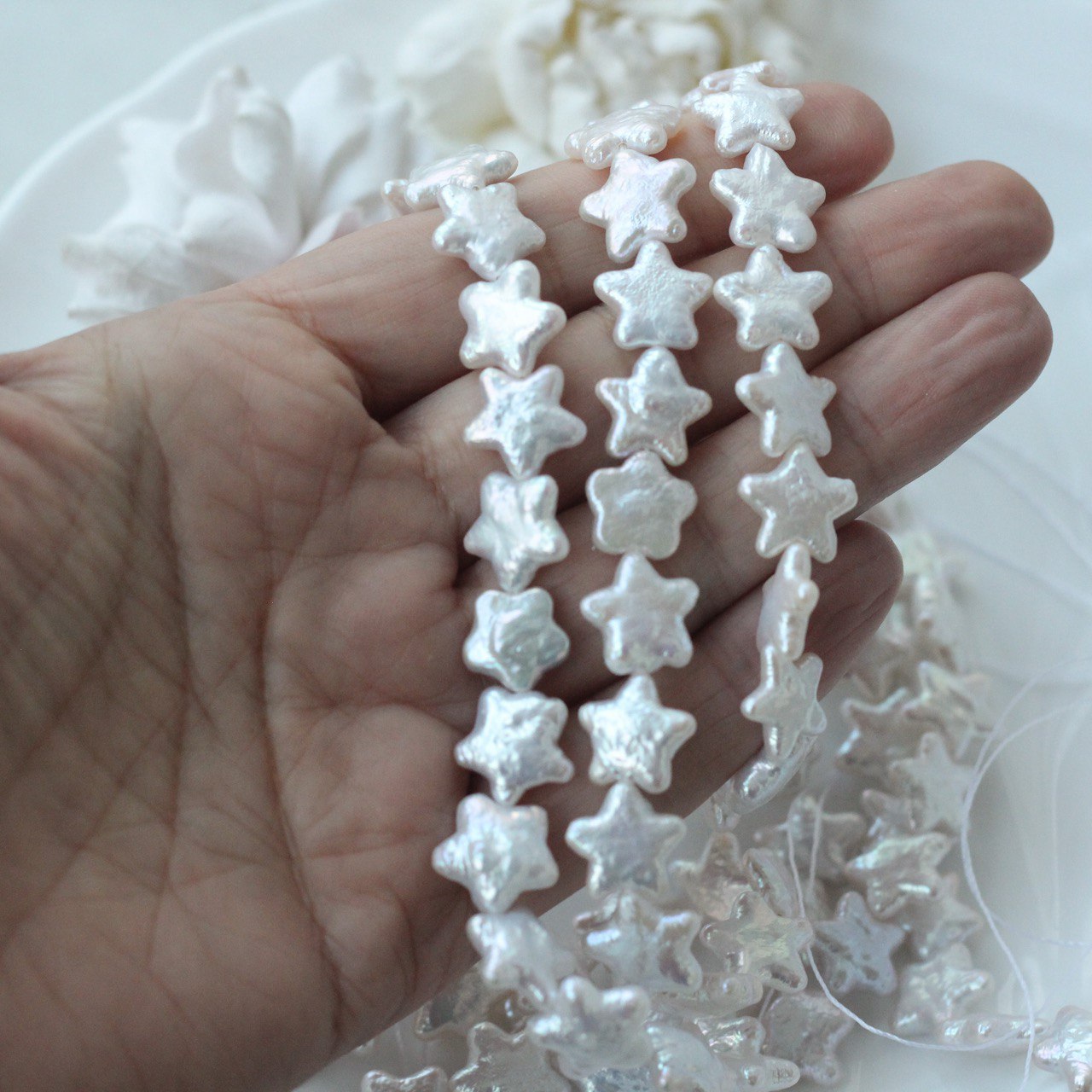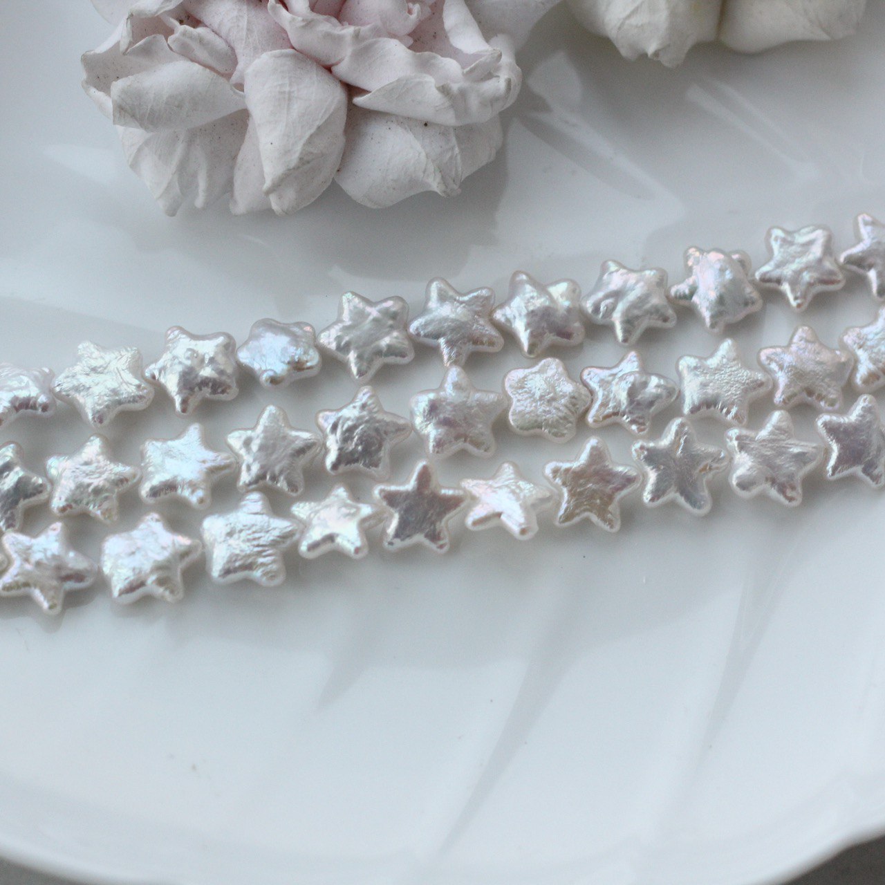 Натуральный барочный жемчуг в форме звёзд — выразительный и живой материал для авторских украшений. Каждая бусина имеет уникальную форму, мягкий перламутровый блеск и природную фактуру, благодаря чему нить выглядит особенно объёмно и атмосферно.